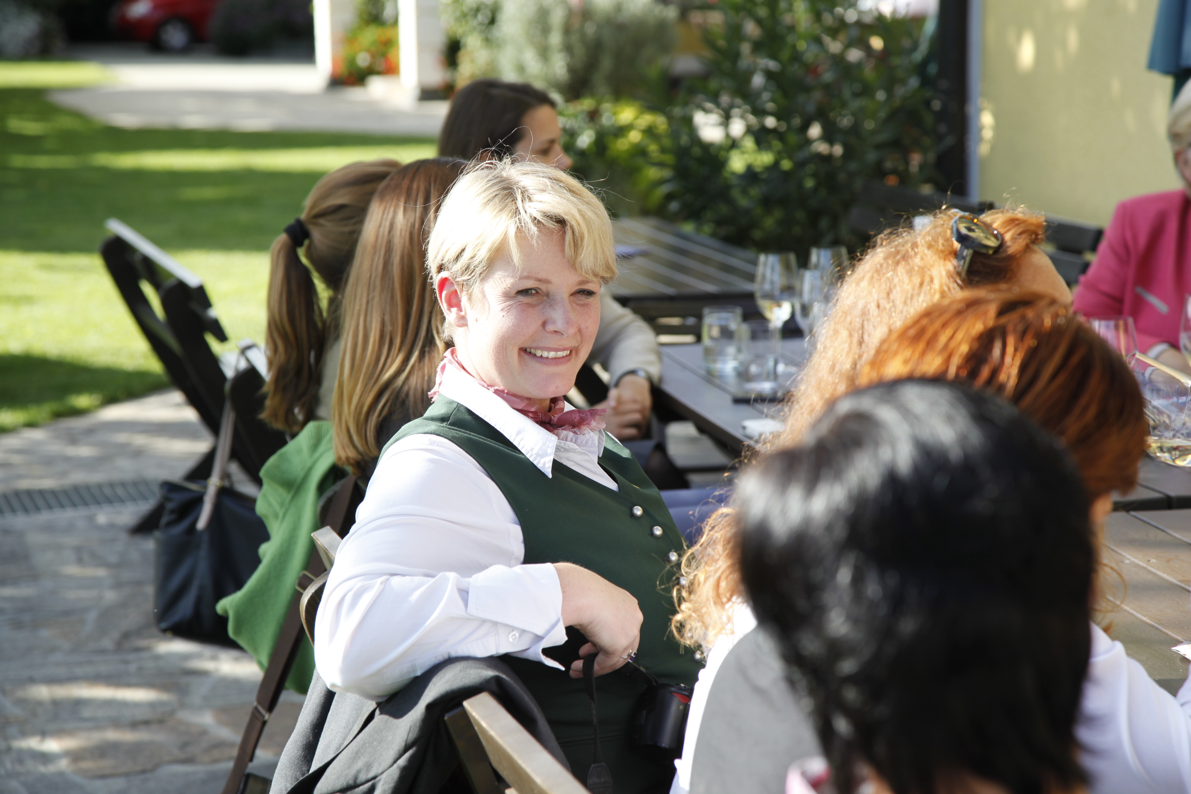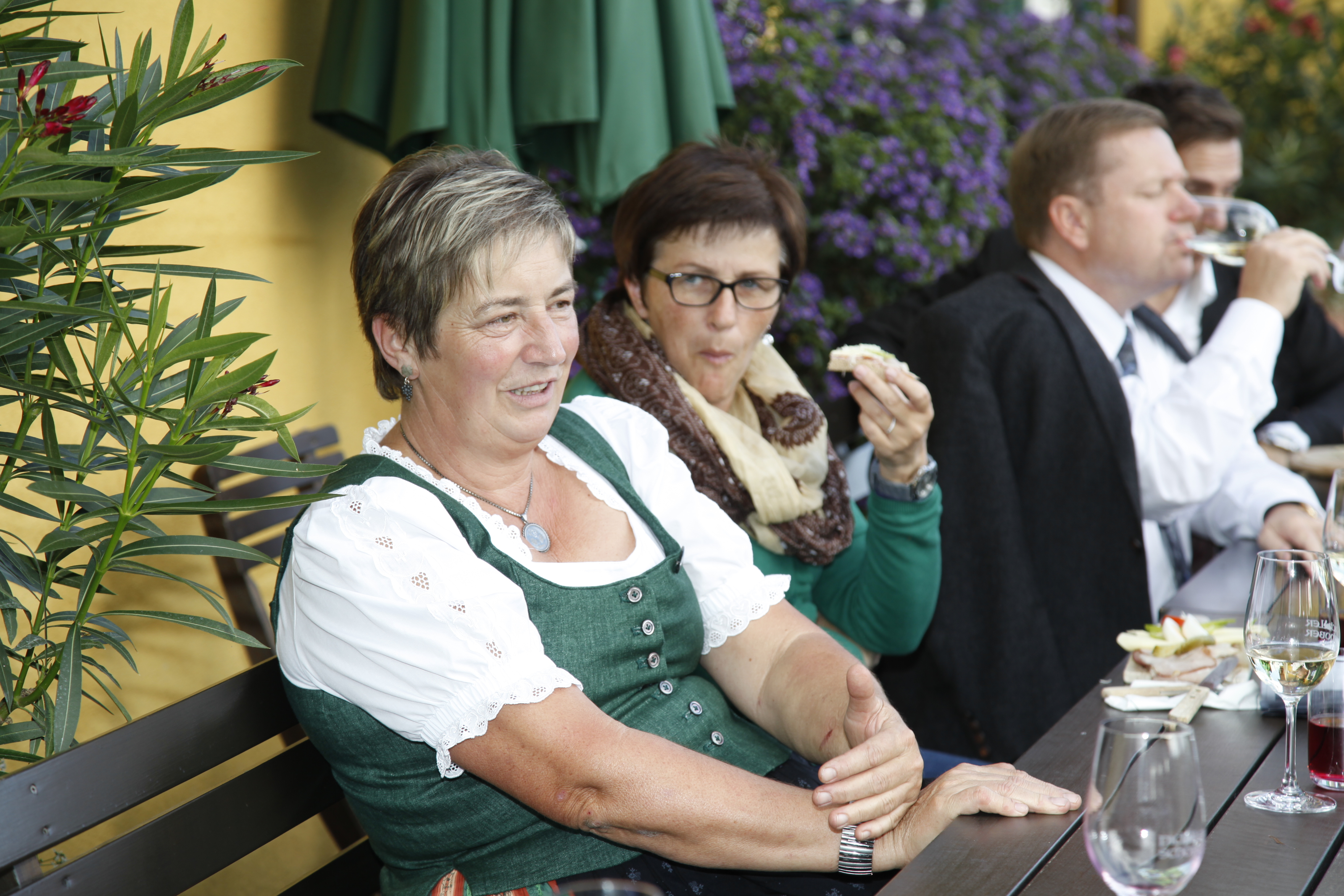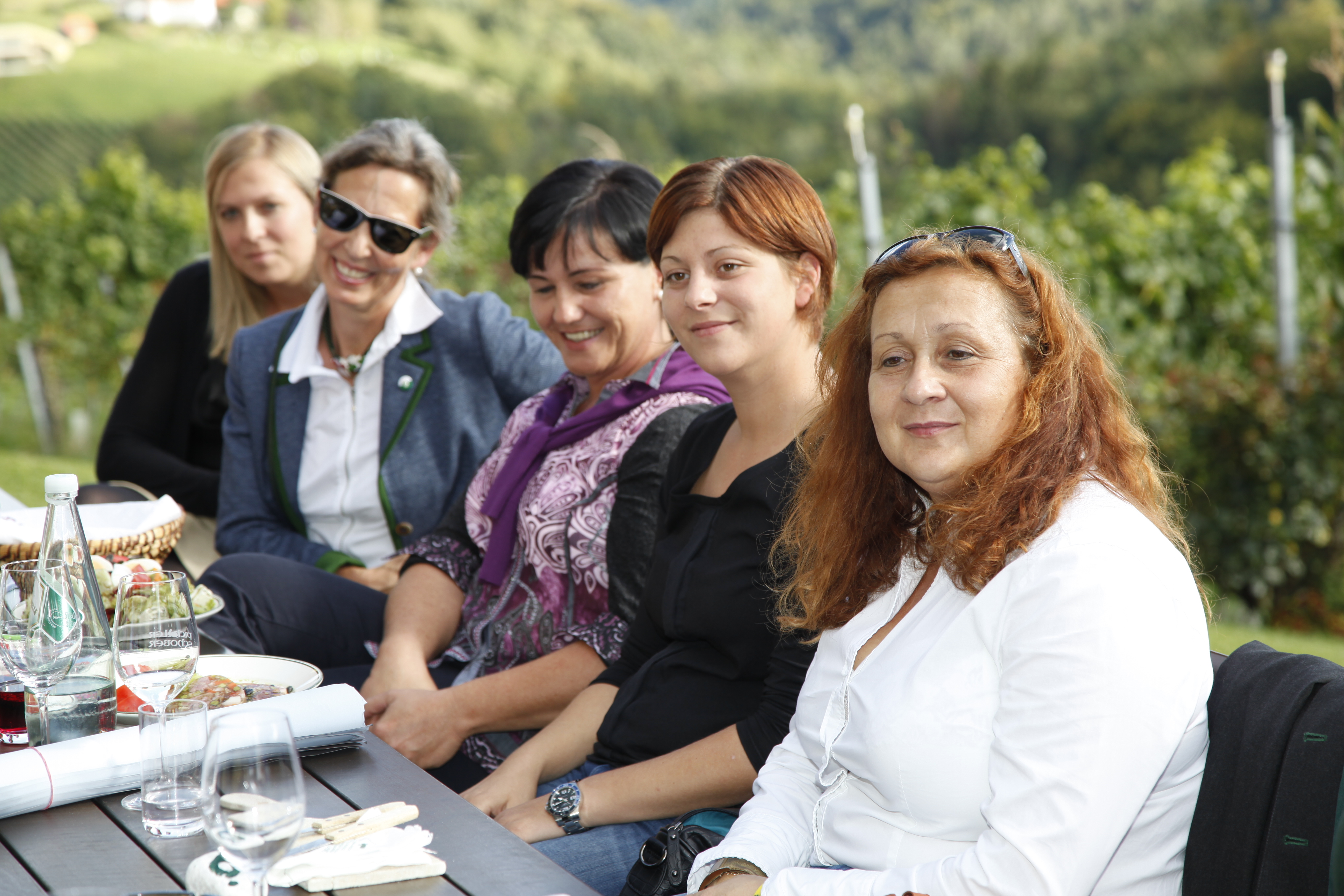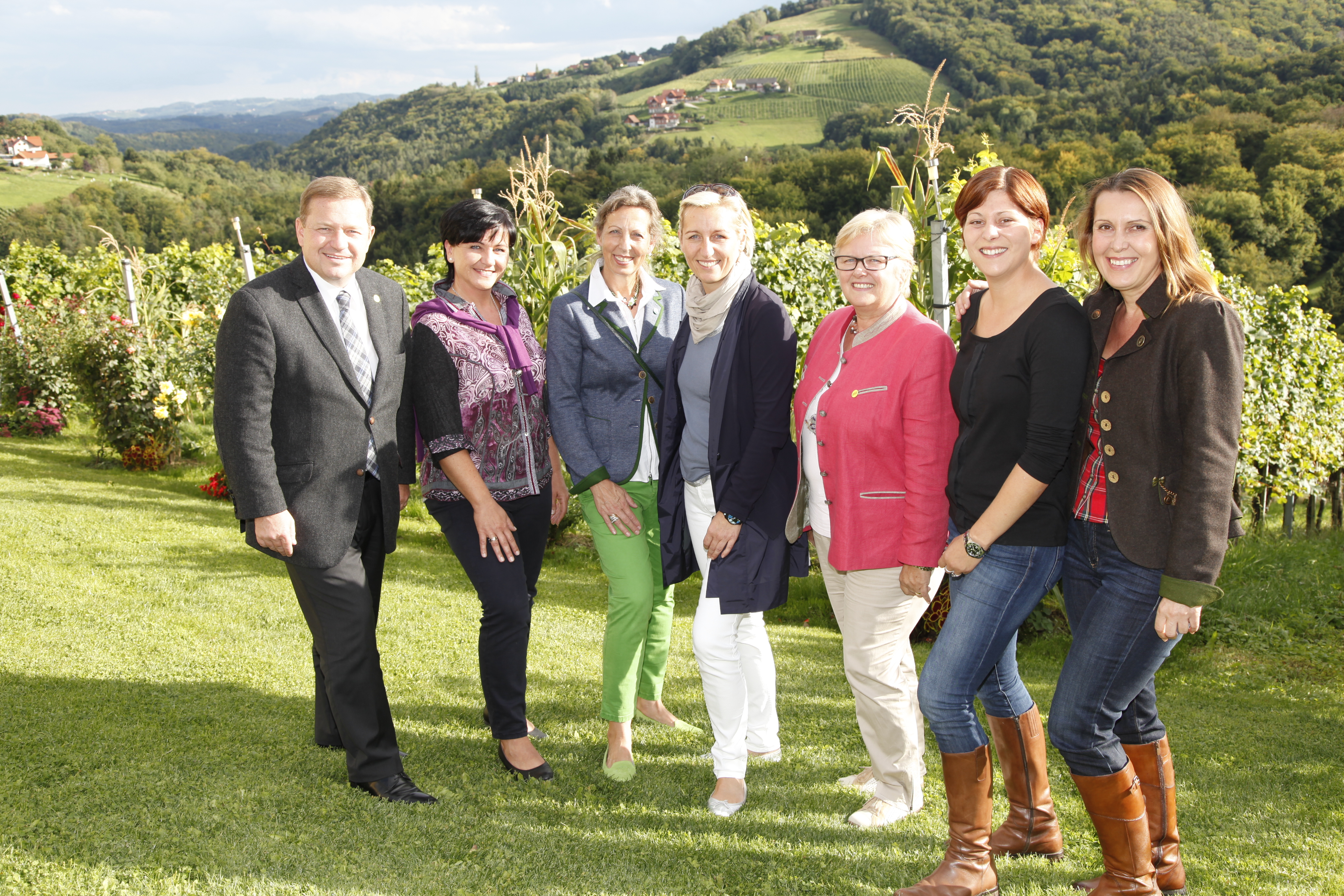 „Wir sind die Frauen, die wirklich Frauen-Politik machen. Wir sind motiviert und durchorganisiert. Mit einfachen Worten, wir sind stark – schwarz – weiblich“. Mit diesem Motto begrüßte NRAbg. Dorothea Schittenhelm die anwesenden Frauen und zeigte sich mitten in den Weinbergen begeistert vom südsteirischen Flair. Gemäß dem Slogan „Frauen treffen Wein“ wurde auch dem südsteirischen Wein viel Beachtung geschenkt. Gastgeberin Sabin Pichler-Schober und Bezirksbäuerinstellvertreterin Grete Kirchleitner analysierten den neuen Jahrgang, „jetzt nach dem Regen fehle ihm noch viel Sonne, weil die Trauben noch zu wenig Zucker hätten. Sollte es noch ein schöner Herbst werden, ergebe das wieder einen perfekten 2014er Jahrgang“, war das Fazit.