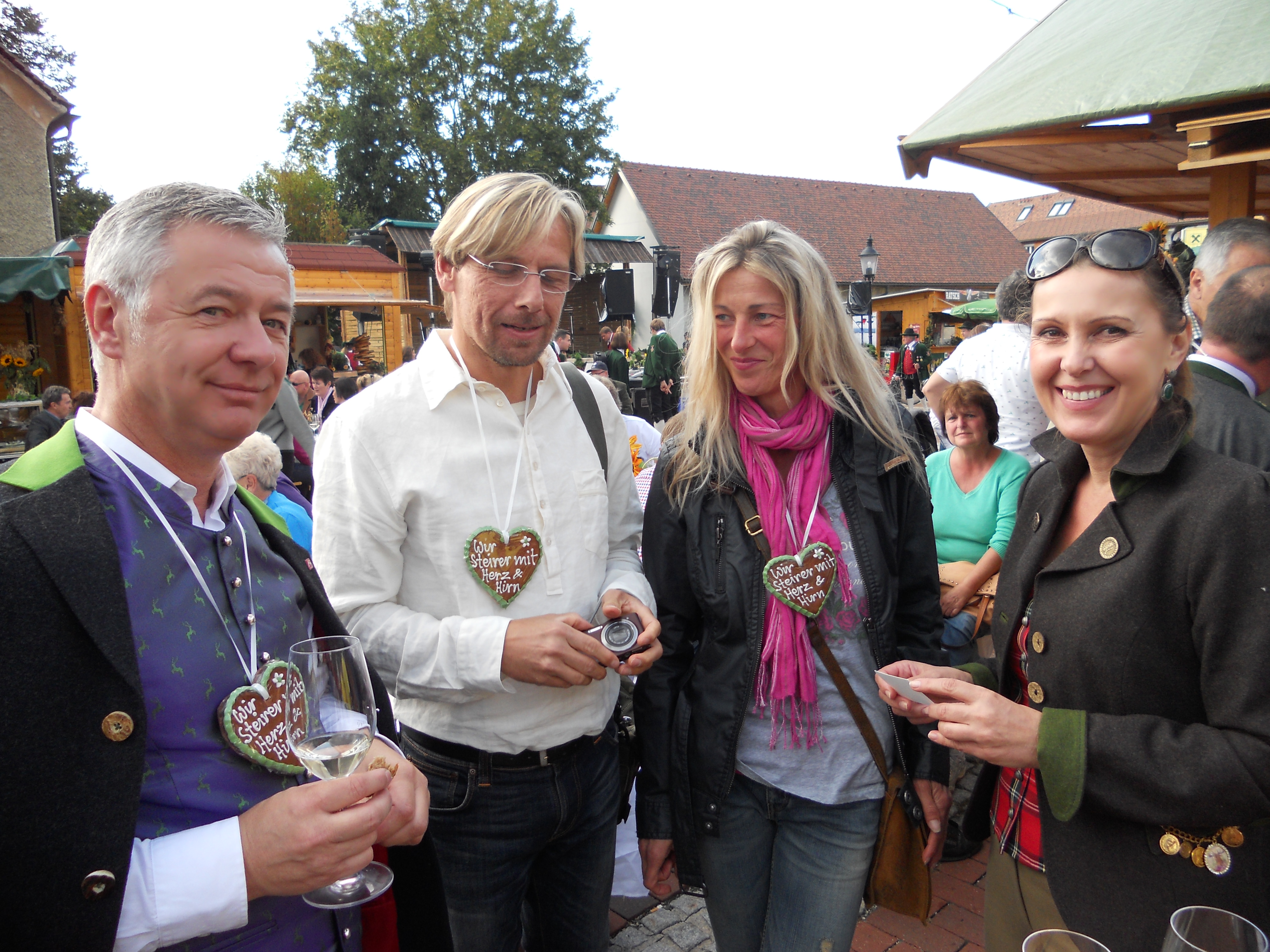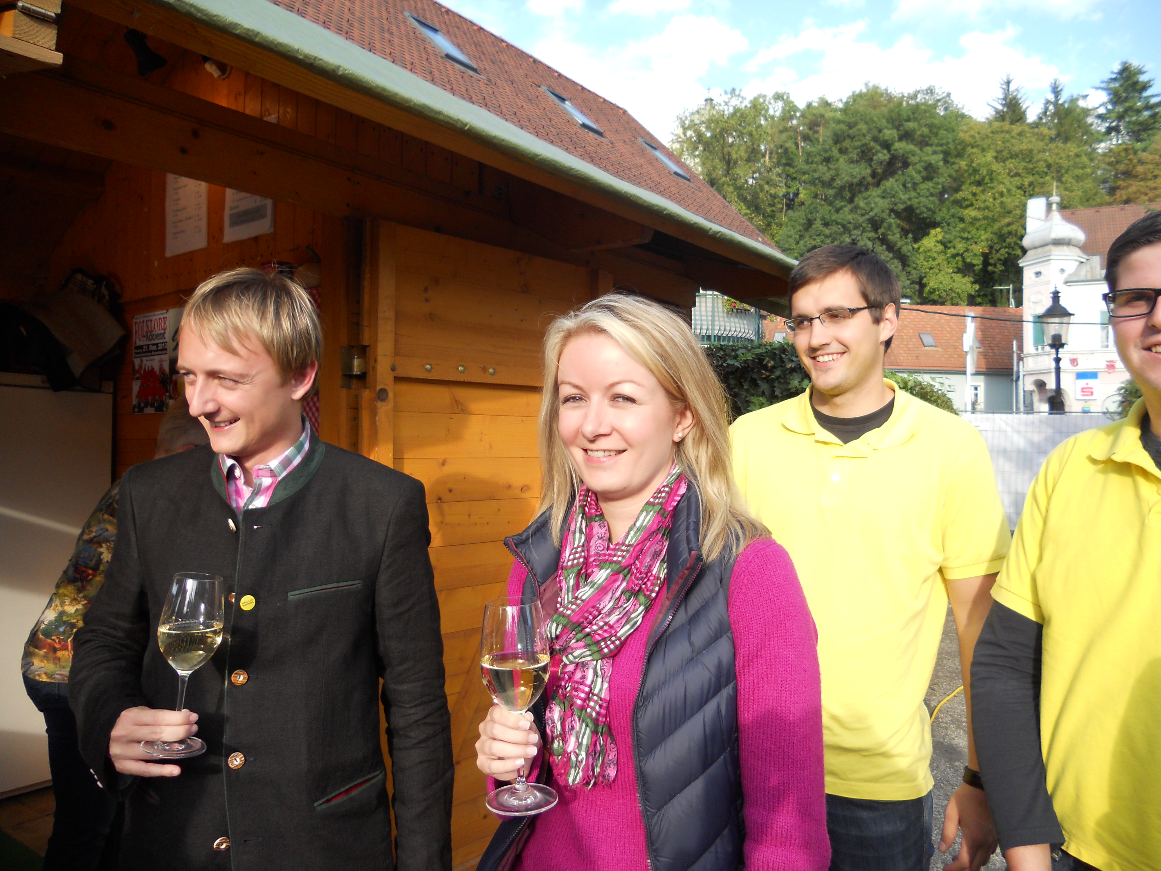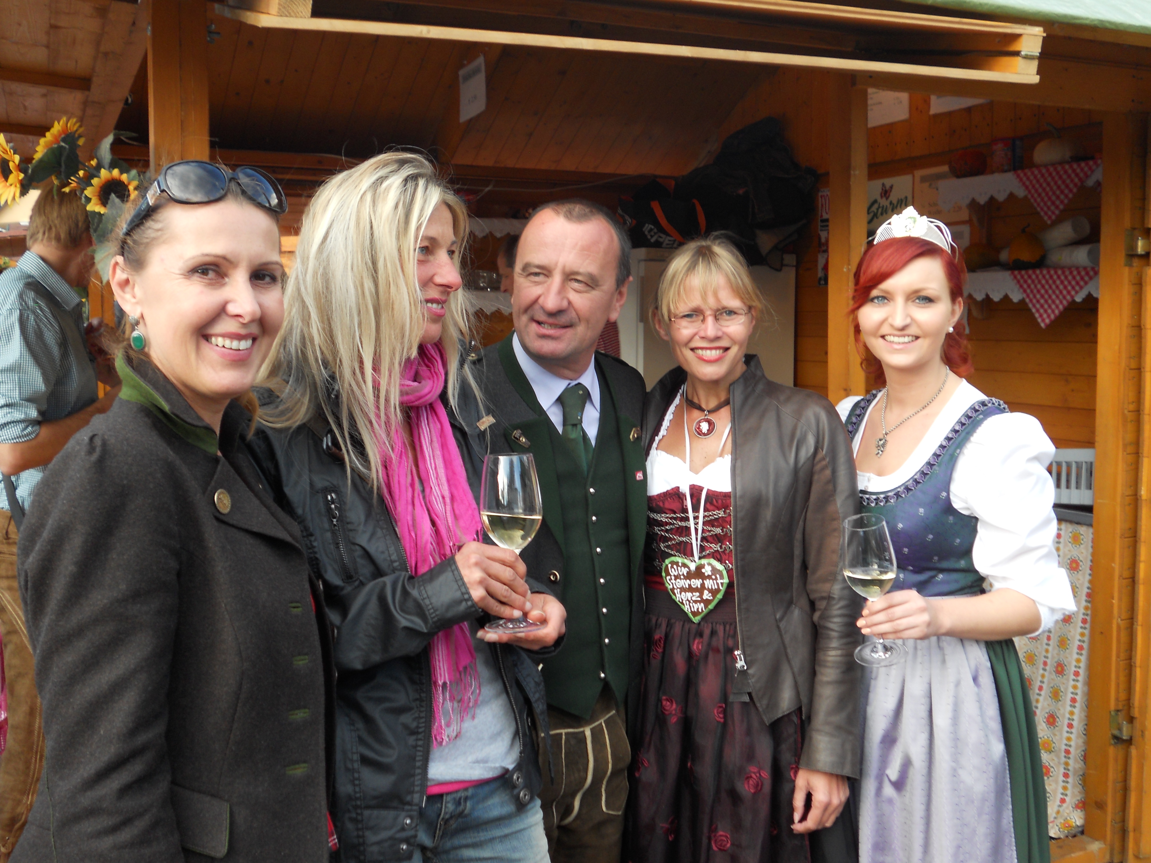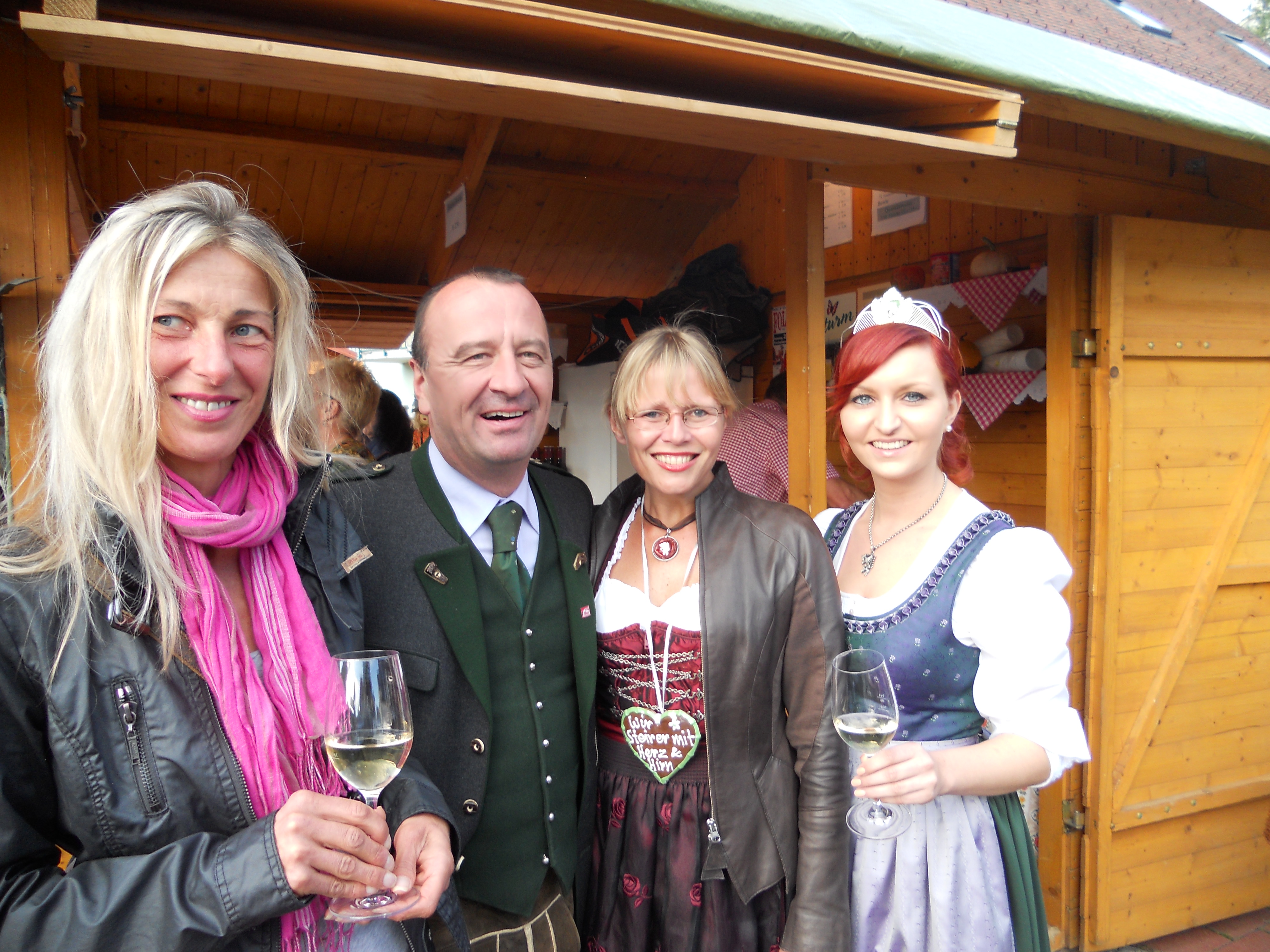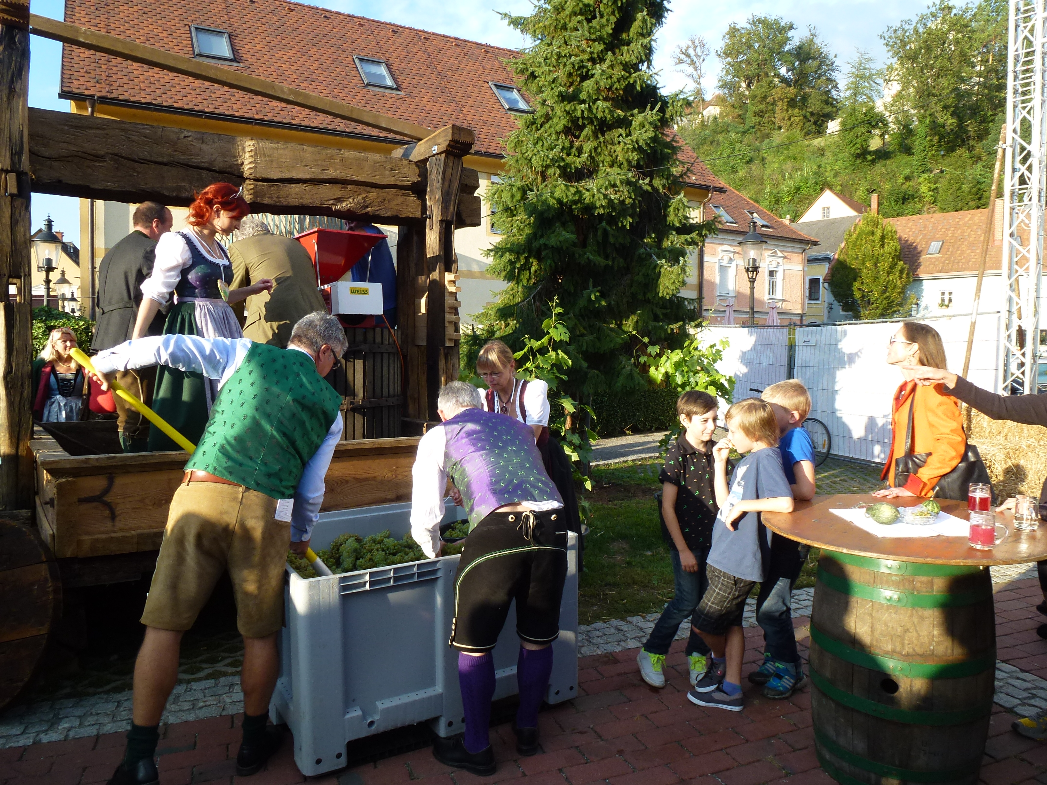 Beim Erzherzog Johann Weinfest in Ehrenhausen gab es ein Schauweinpressen auf einer 99 Jahre alten Baumpresse mit Bundesministerin Dr. Beatrix Karl und Weinhoheit Bernadette Stelzl.