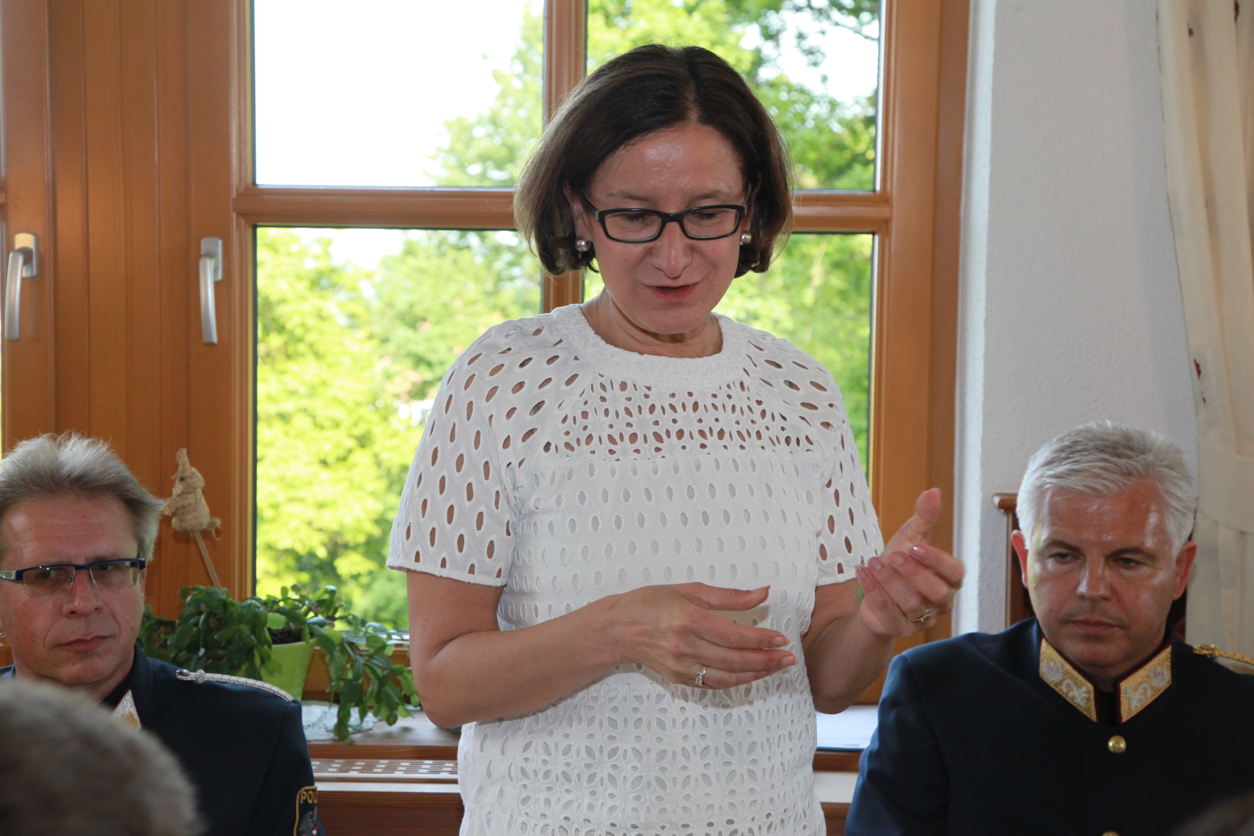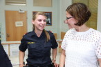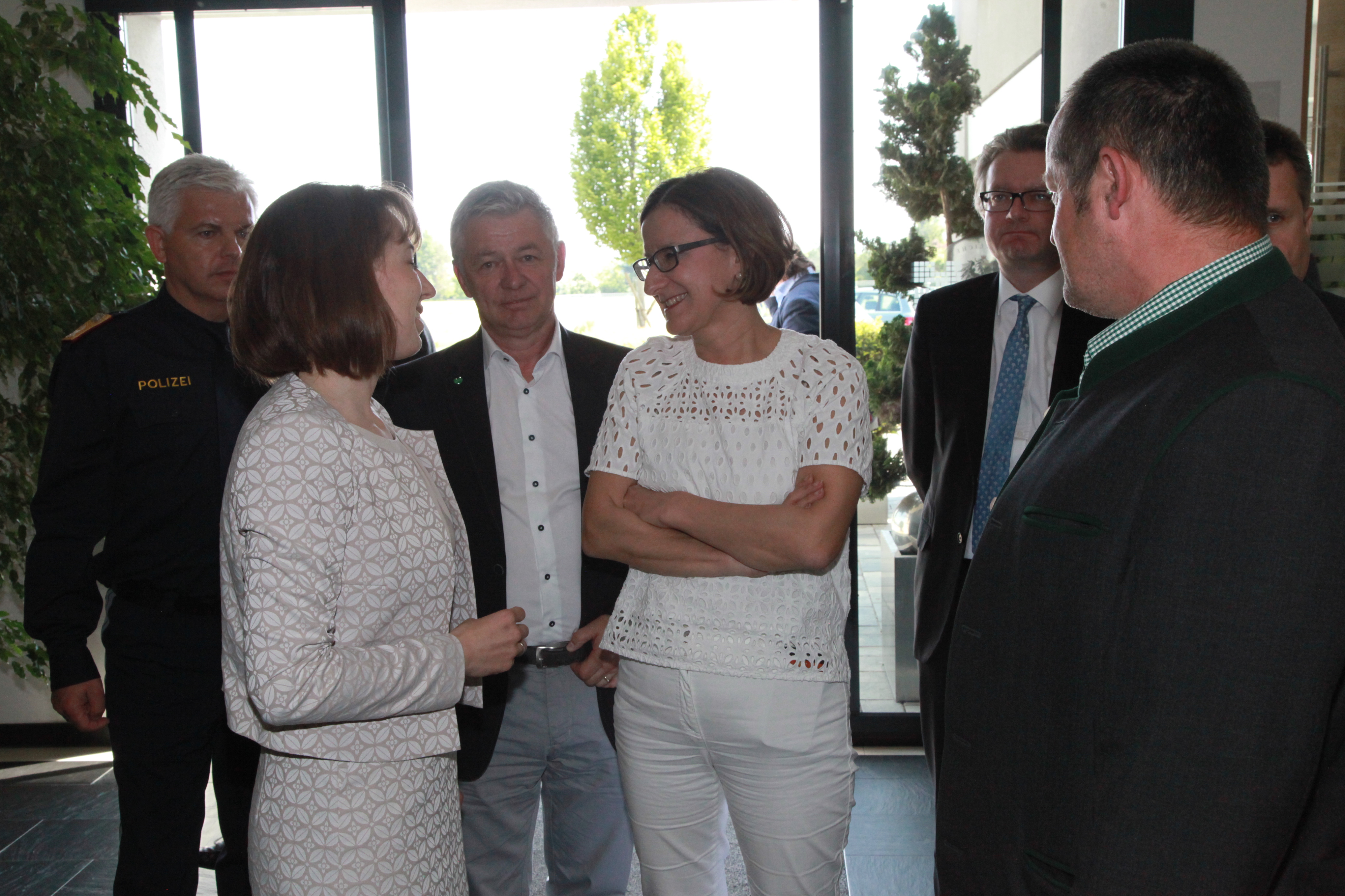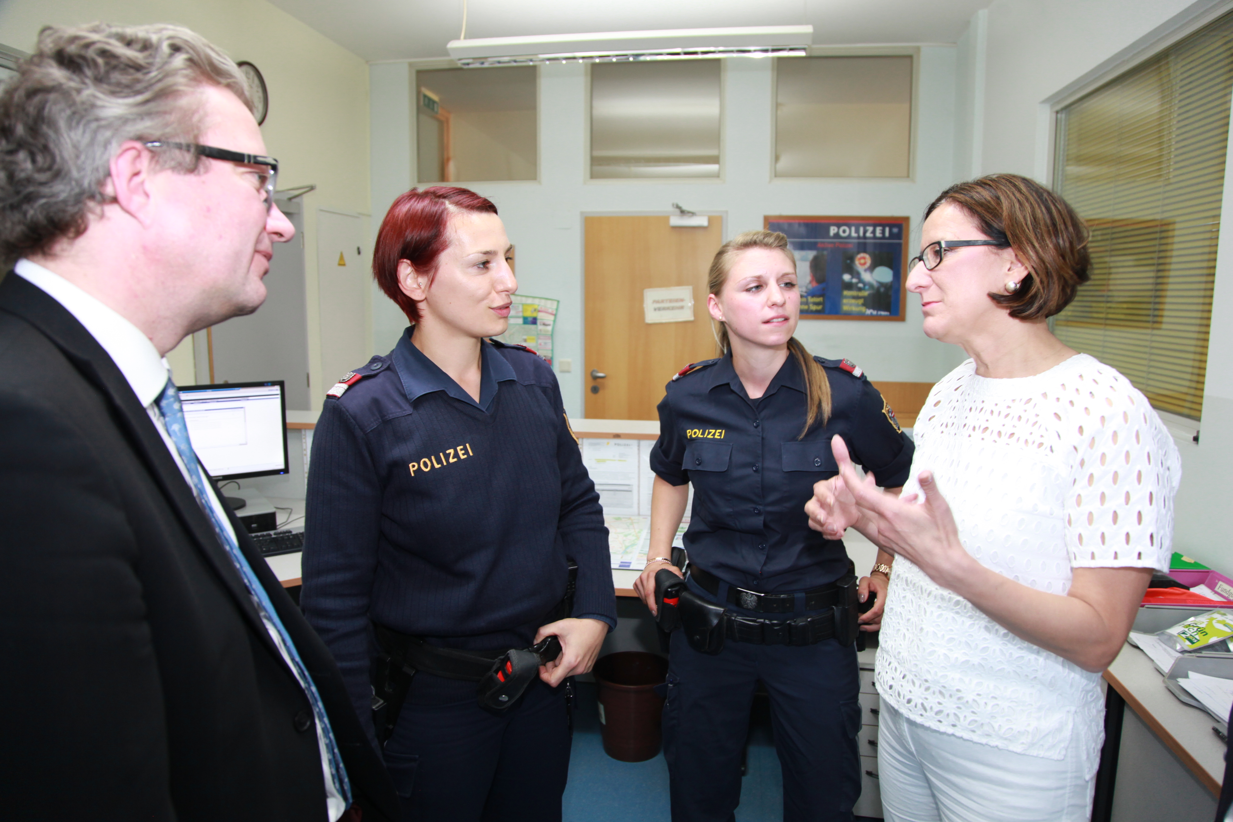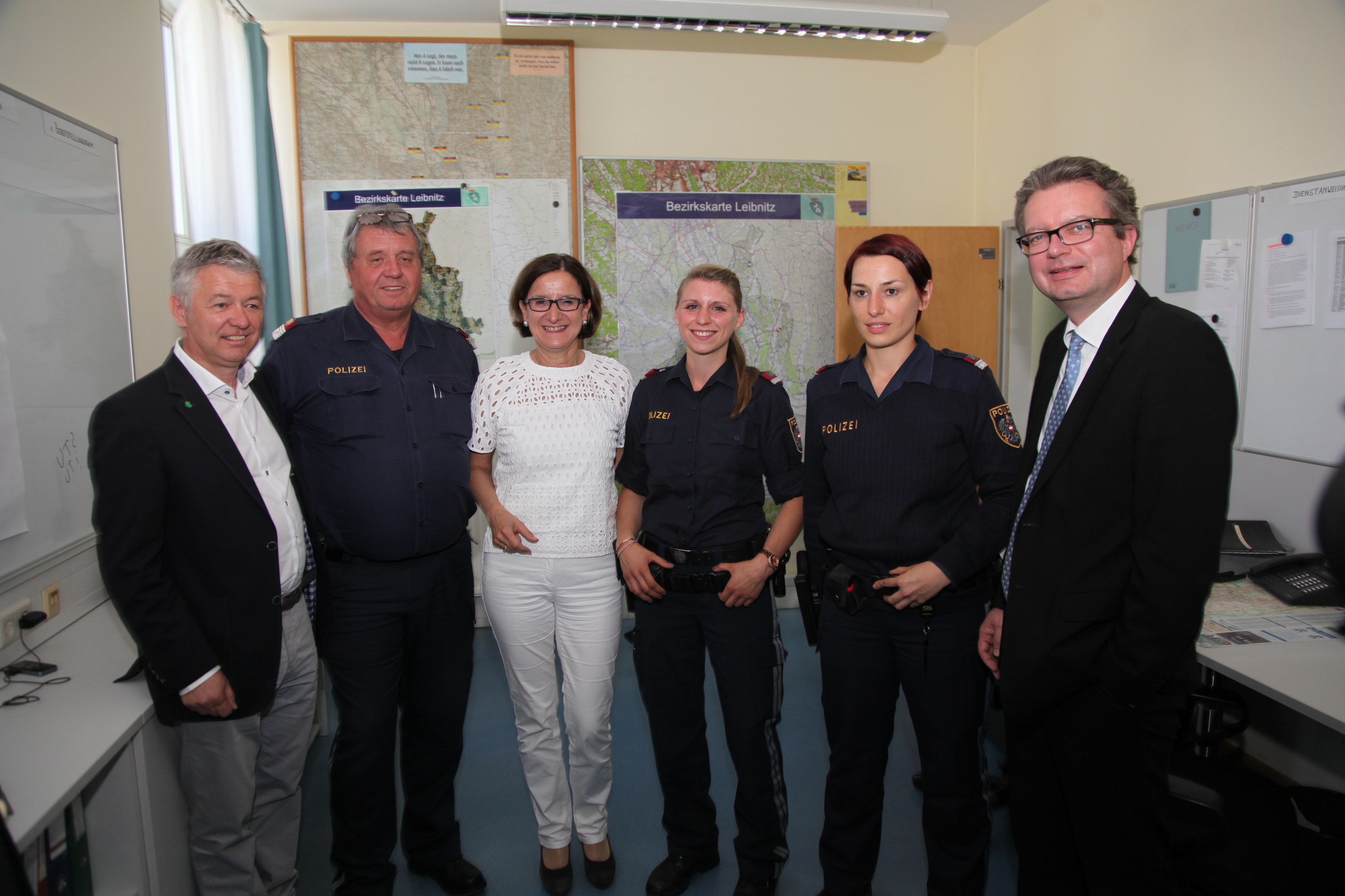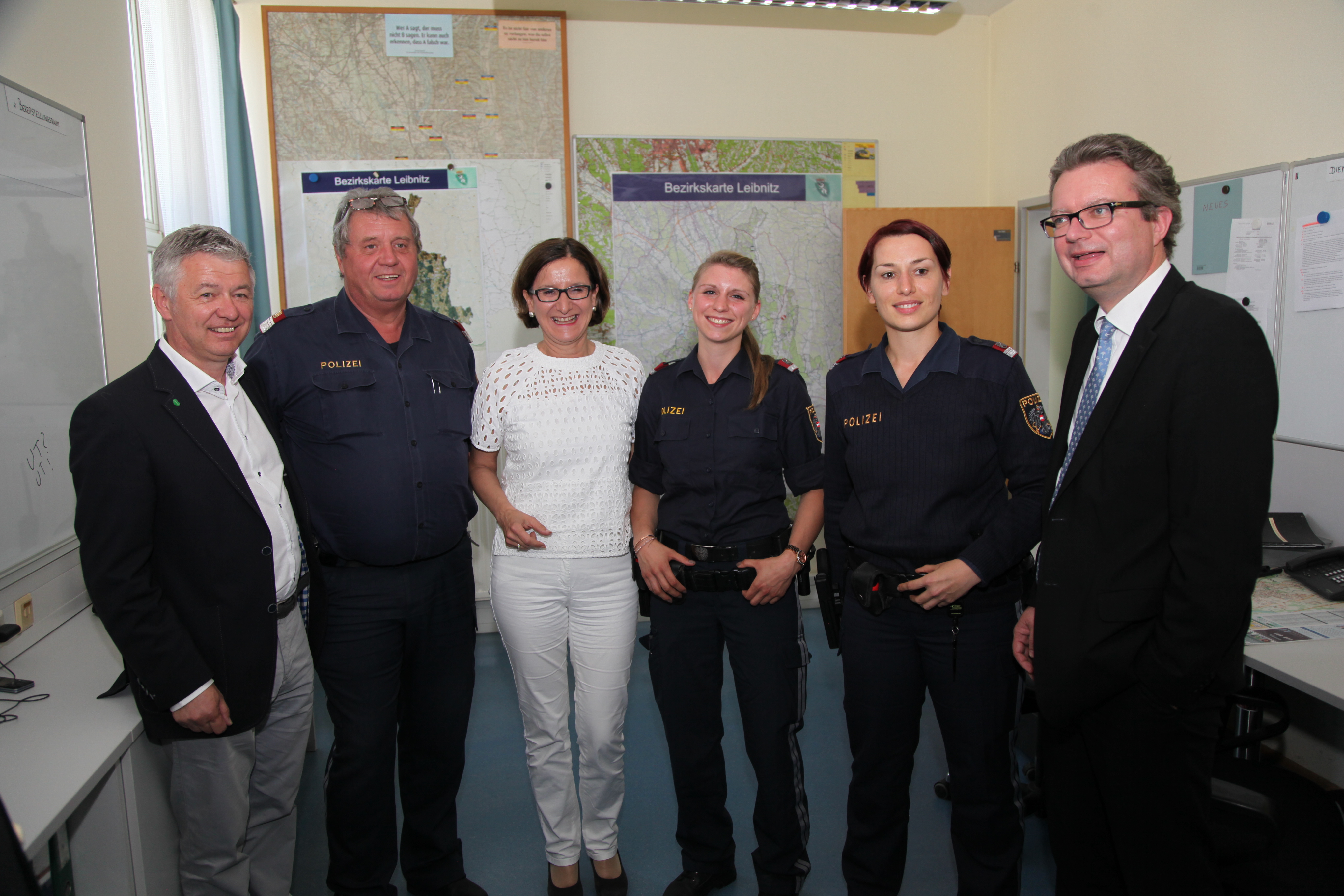 Natürlich war es der Ministerin ein besonderes Anliegen als Ressortleiterin mit ihren Exekutivbeamten zusammenzutreffen. Im Polizeiposten Leibnitz als größte Polizeiinspektion im Bezirk Leibnitz (37 Mitarbeiter), gab es mit Postenkommandanten Chefinspektor Bernd Schwarz und Bezirks-kommandanten Oberst Gerhard Trummer intensive Gespräche.