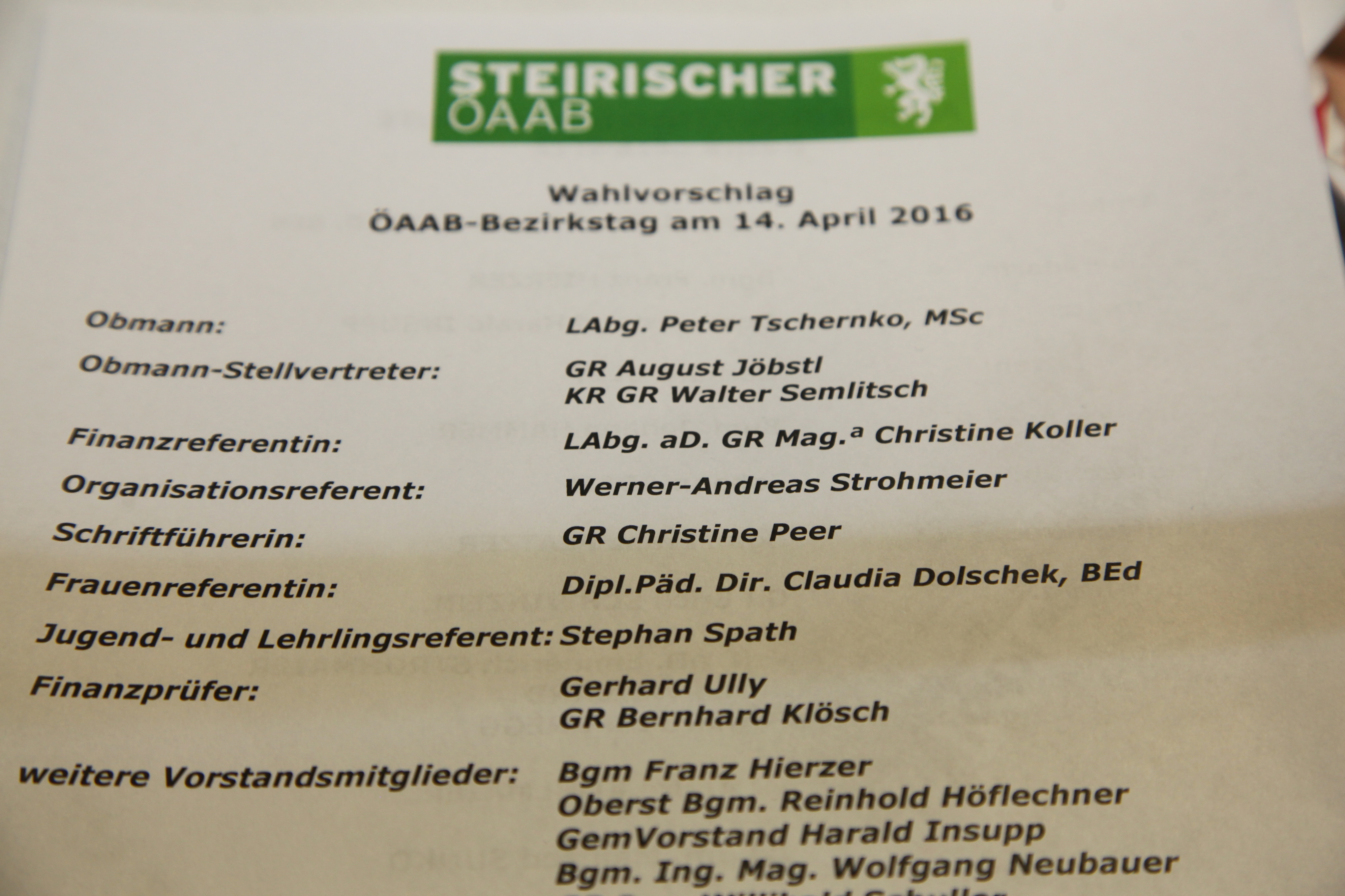 ÖAAB-Ehrungen und Neuwahlen im Bezirk Leibnitz