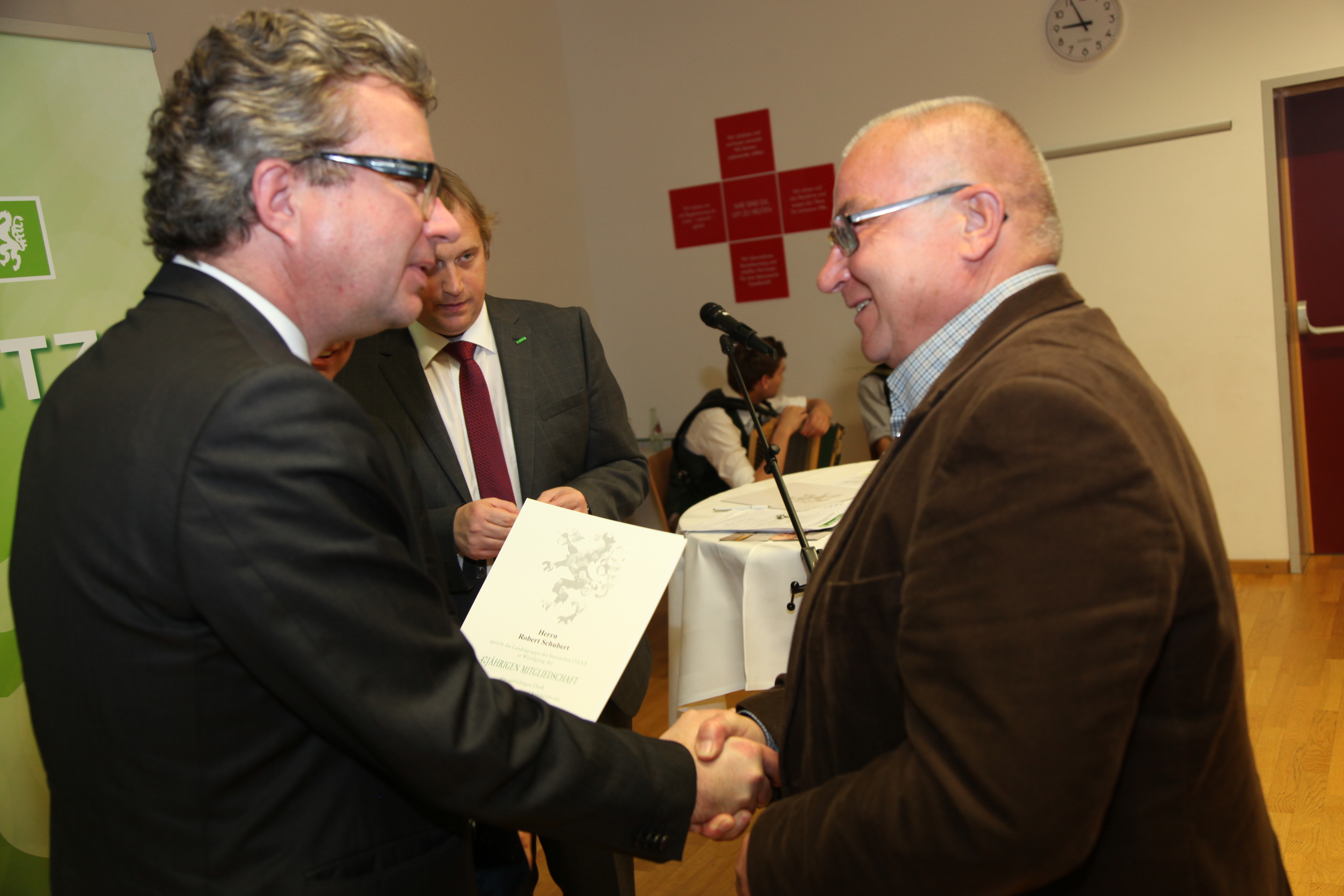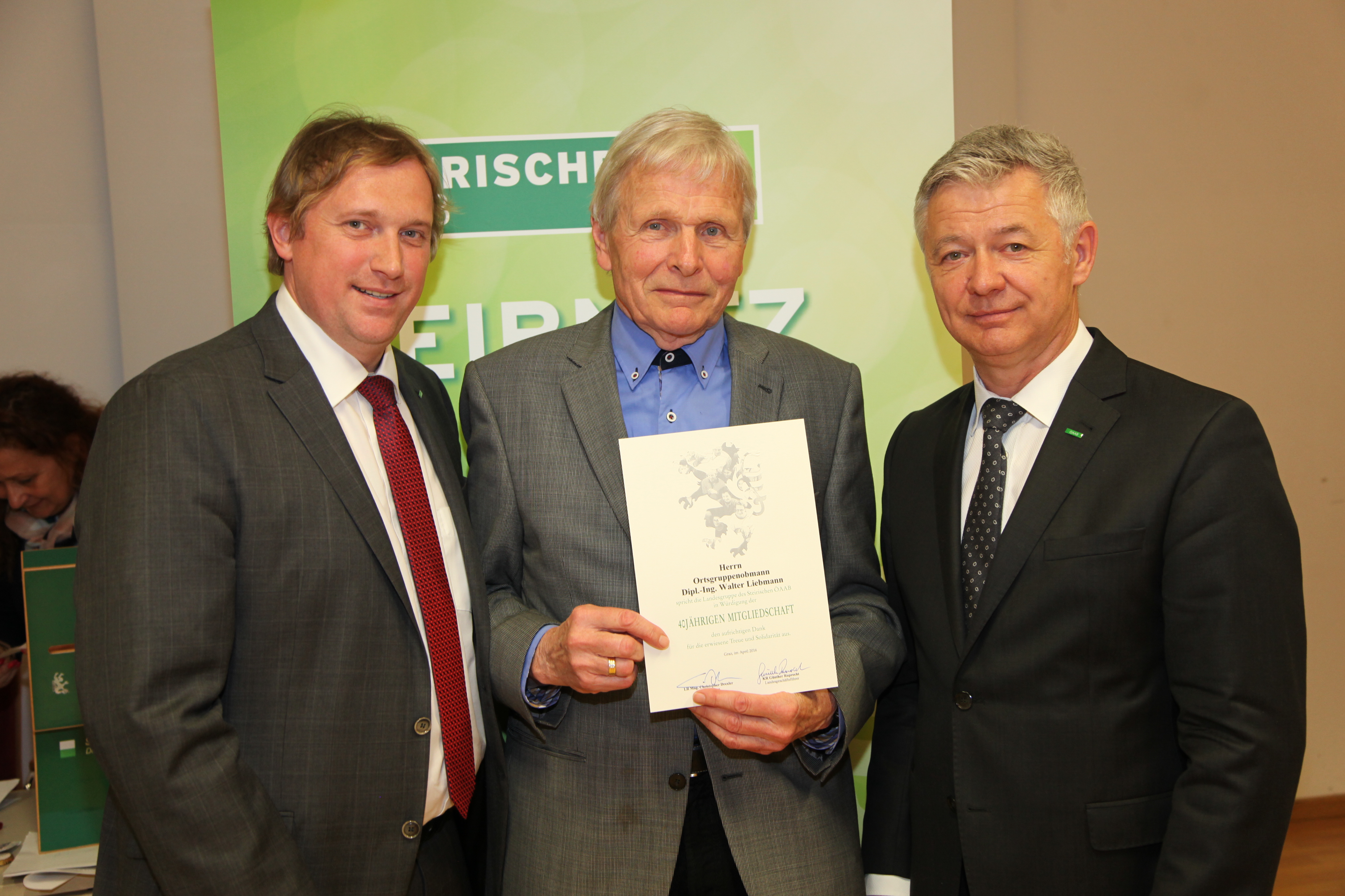 Der ÖAAB dankte im Bezirk Leibnitz beim Bezirkstag im Schloss Laubegg (Rot-Kreuzzentrum) zahlreichen Mitgliedern, die 25, 40, 50 und 60 Jahre dieser „Gesinnungsgemeinschaft die Treue gehalten haben“. ÖAAB-Landesobmann LR Mag. Christopher Drexler wies besonders auf die Wichtigkeit der Mitglieder für den ÖAAB hin. Bei dieser Feierstunde fand auch die Neuwahl des Bezirksvorstandes statt und Drexler konnte LAbg. Peter Tschernko, MSc zu seiner fast einstimmigen Wiederwahl gratulieren.