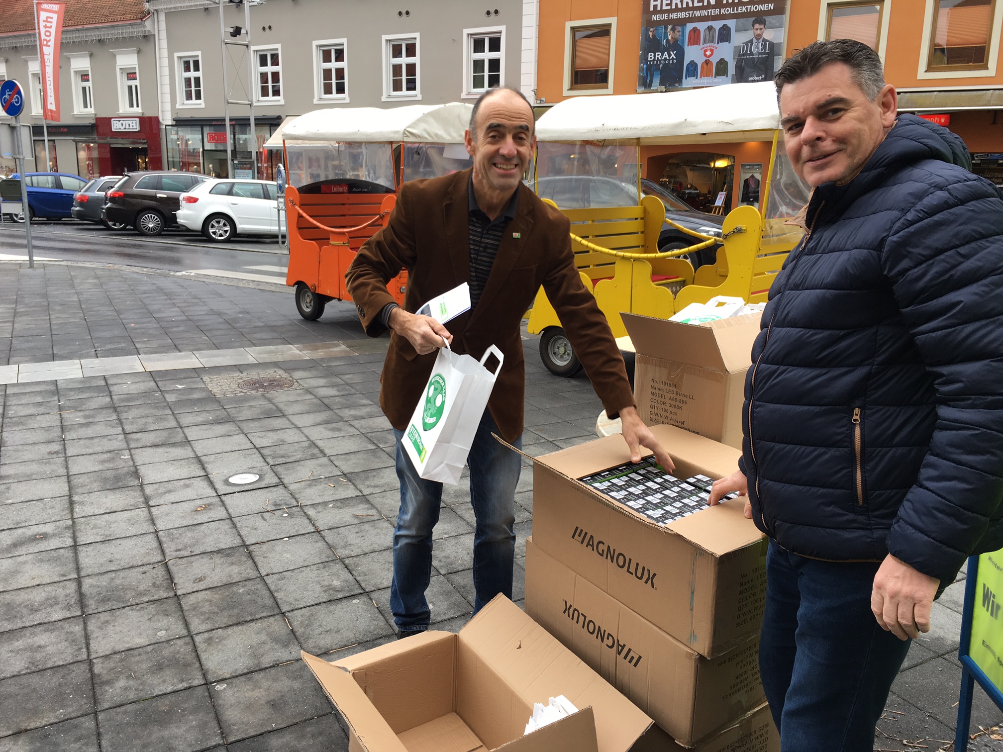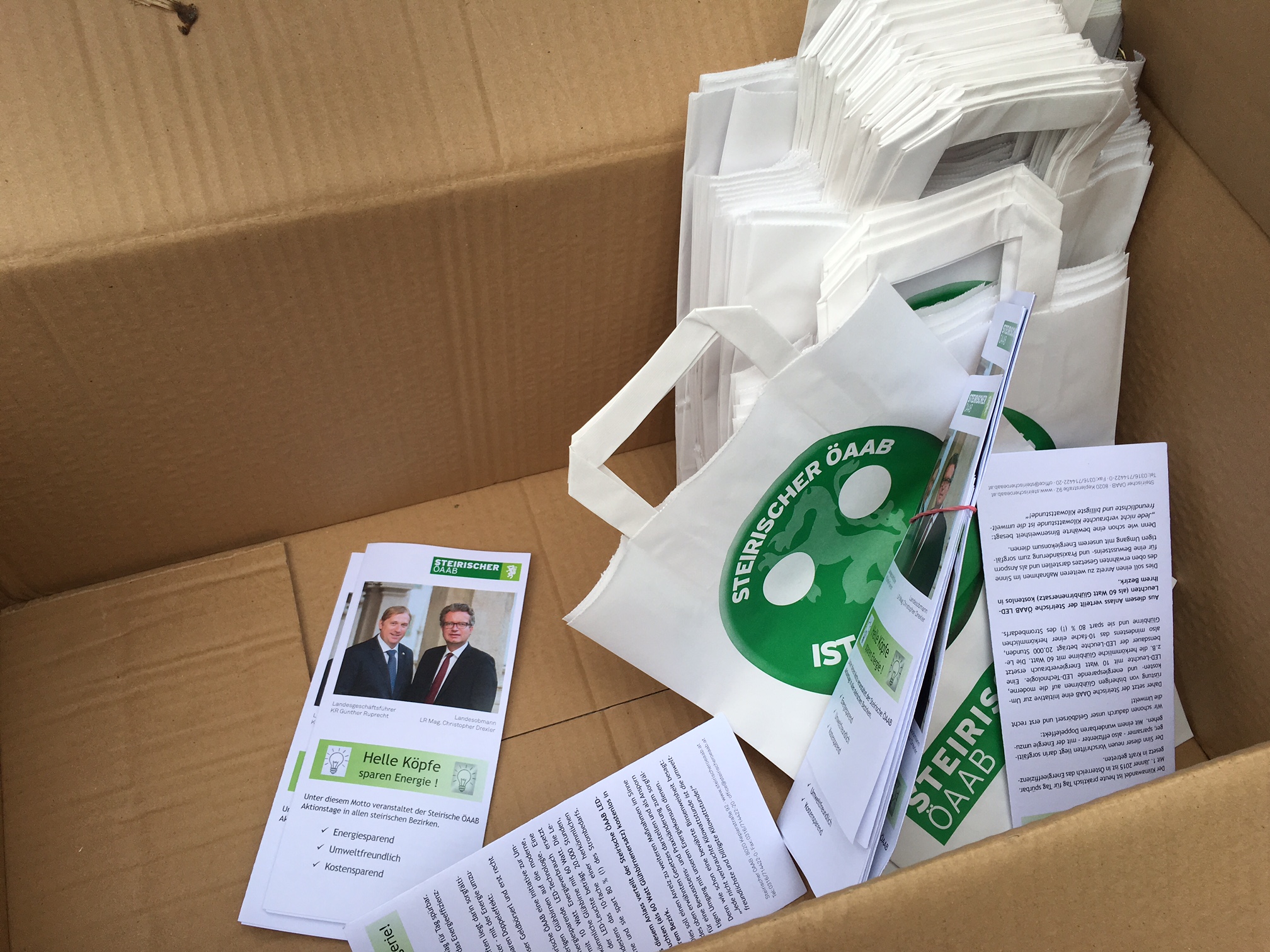 Unter diesem Motto veranstaltete der Steirische ÖAAB mit Landesgeschäftsführer Günther Ruprecht, ÖAAB Bezirksobmann LAbg. Peter Tschernko, Kammerrat GR Walter Semlitsch, Betriebsratsvorsitzender GR August Jöbstl und Gerhard Piuk (ÖAAB Landesleitung) einen Aktionstag in der Bezirkshauptstadt Leibnitz und verteilte LED-Leuchten (als 60 Watt Glühbirnenersatz).