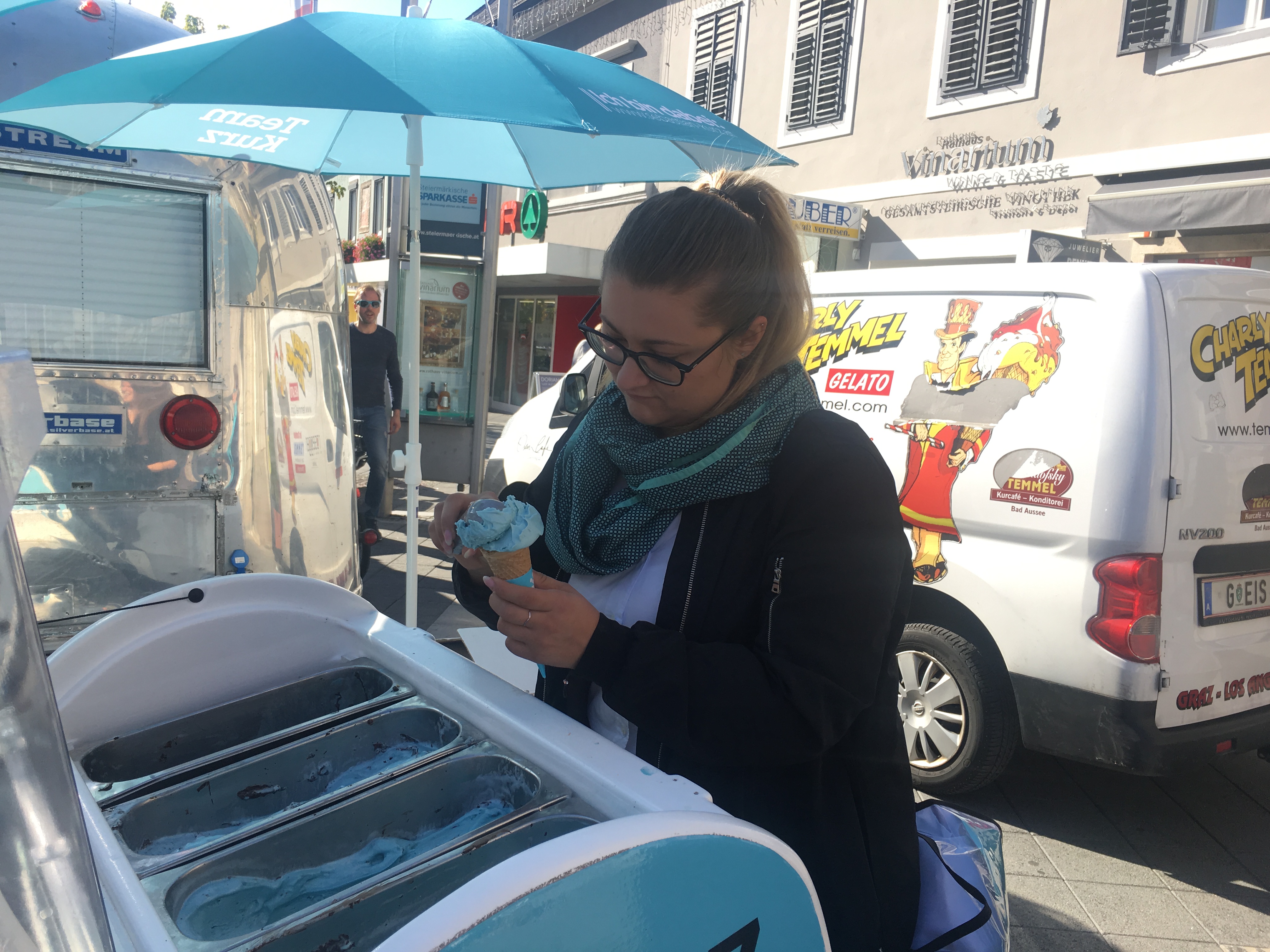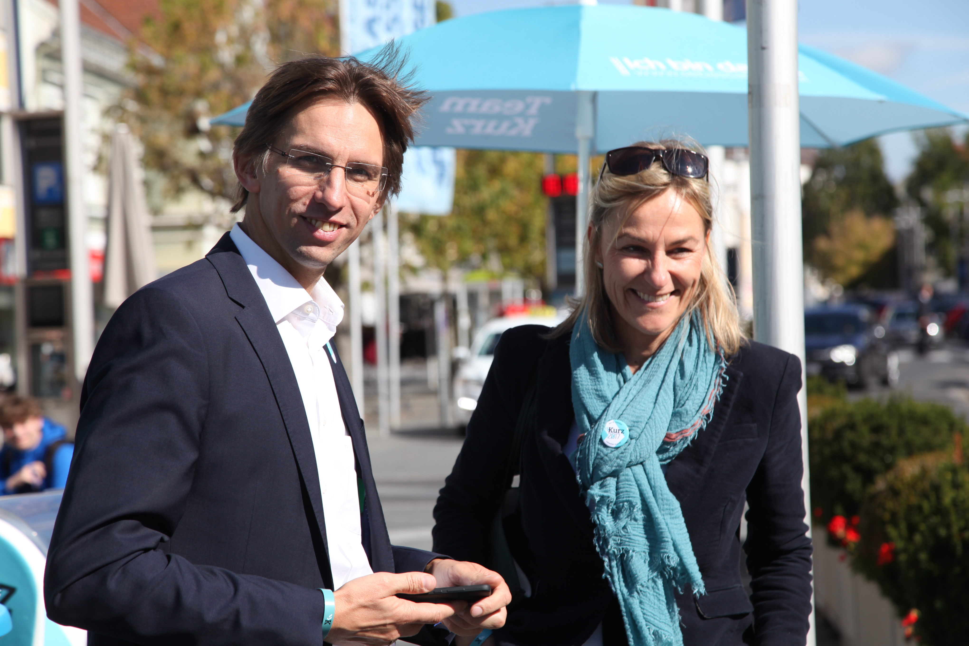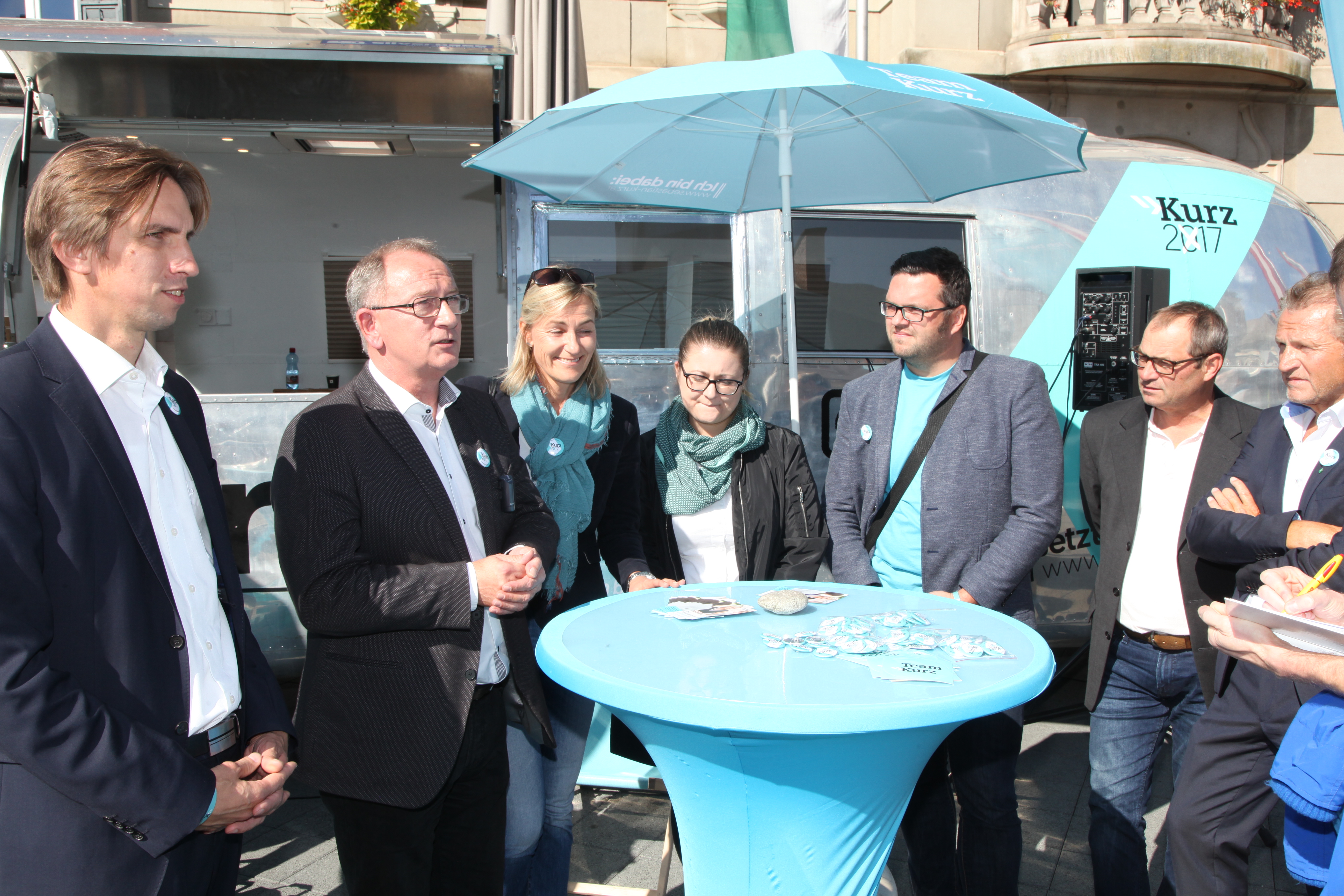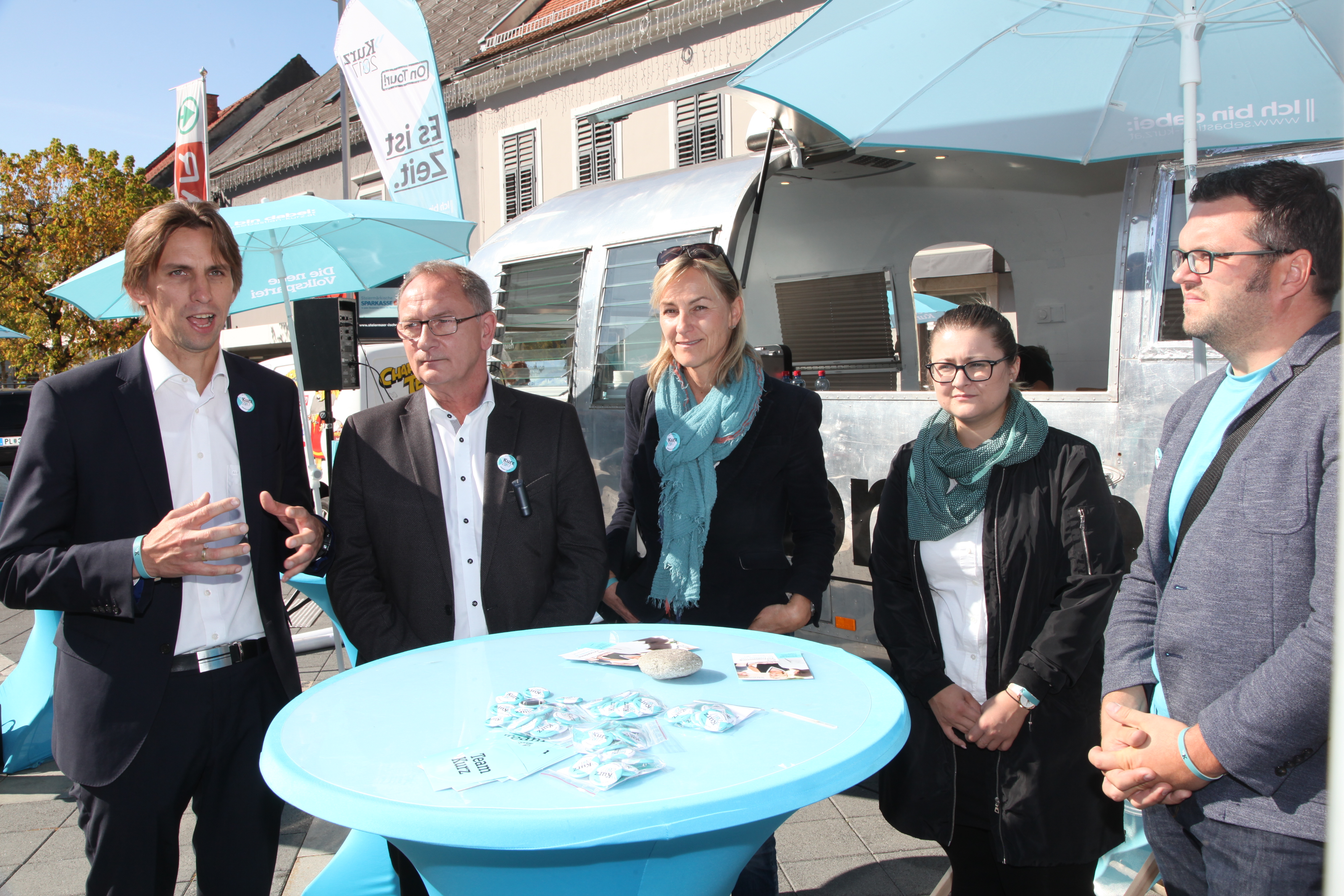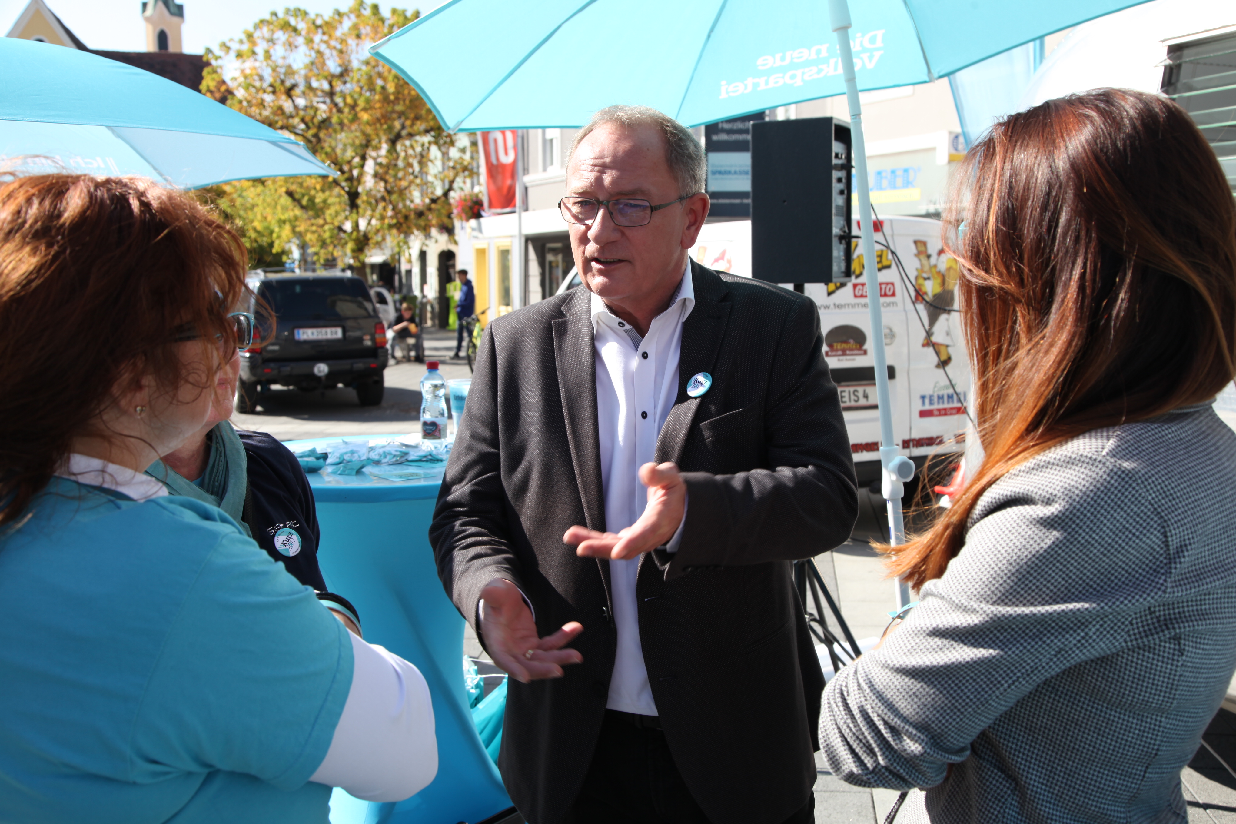 Neben Verteilaktionen in der Bezirkshaupmannschaft, Geschäften, Lokalen und Betrieben, konnten sich die Passanten und Interessierten dann am Hauptplatz beim glänzendem Airstream-Wagen über die Positionen der neuen Volkspartei informieren und dabei ein exklusives Eis in der neuen Parteifarbe genießen. „Die Stimmung ist gut, aber wir dürfen den Tag nicht vor dem Abend loben. In den nächsten Tagen gilt es die Stimmung in Stimmen umzuwandeln“, so der Landesgeschäftsführer abschließend.