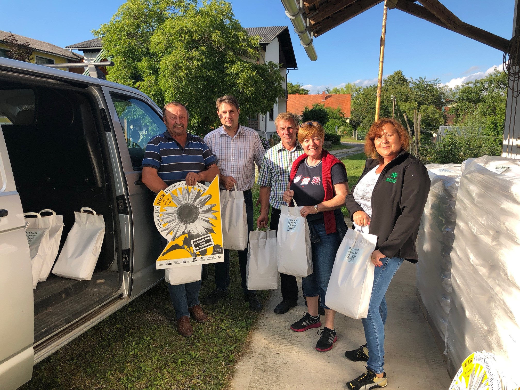 Auch heuer wurden wieder über 3.000 kg Sonnenblumenkerne an die Landwirte im Bezirk Leibnitz im Rahmen der „Sonnenblumenaktion des Steirischen Bauernbundes“ verteilt.