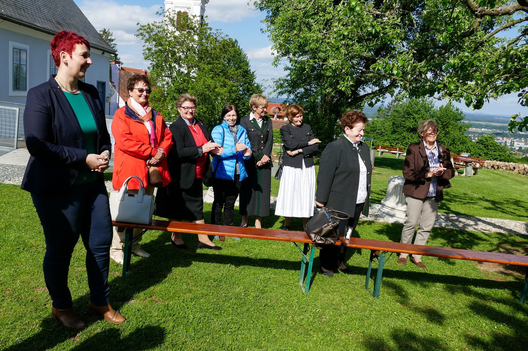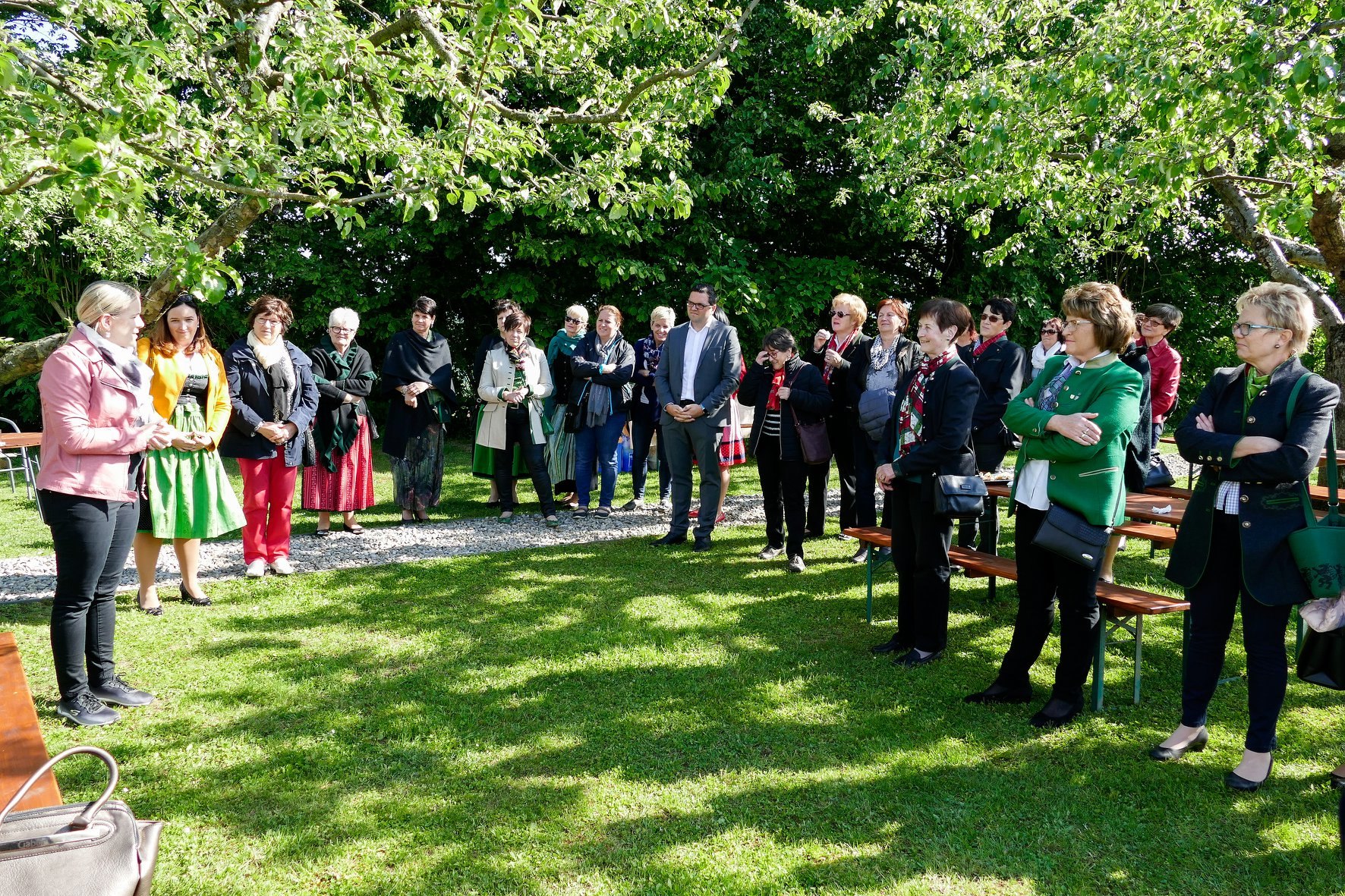 OL Barbara Kriegl begrüßte die Ehrengäste und die Frauenaus den Ortsgruppen beim Tempelmuseum am Frauenberg.