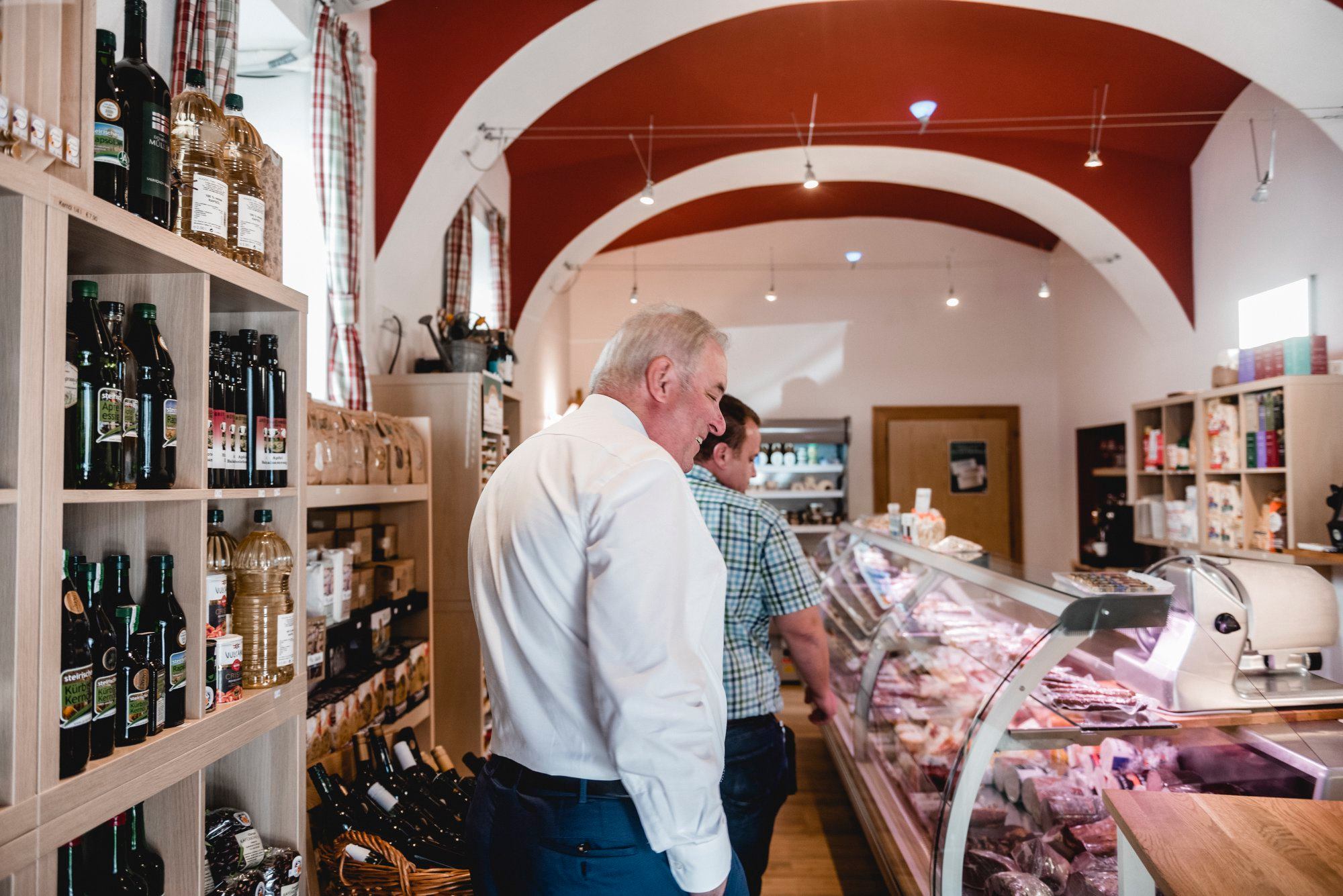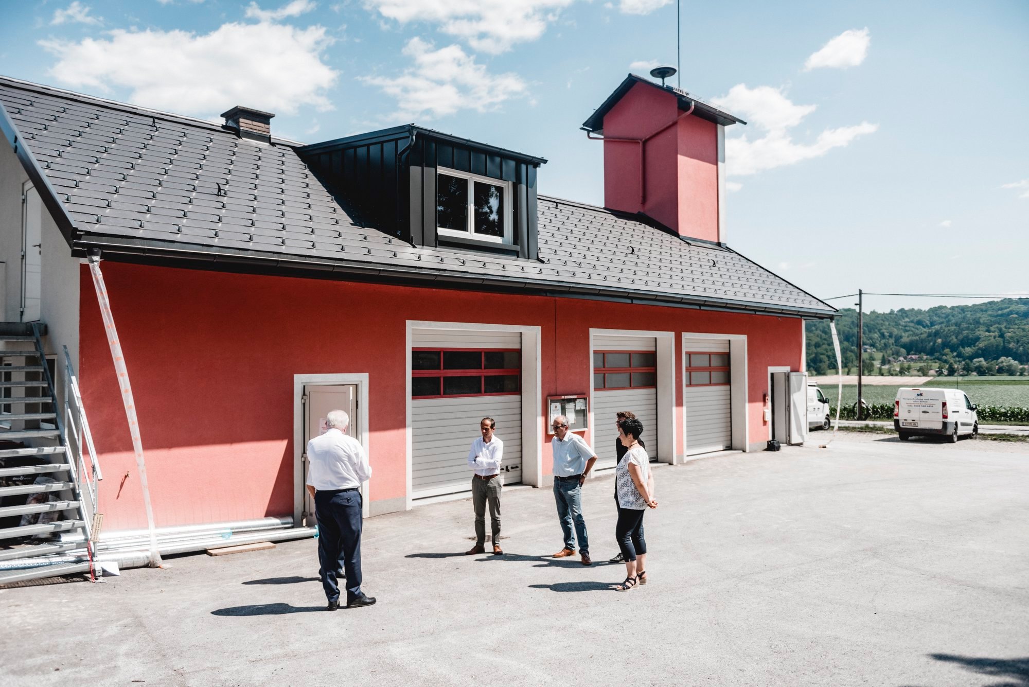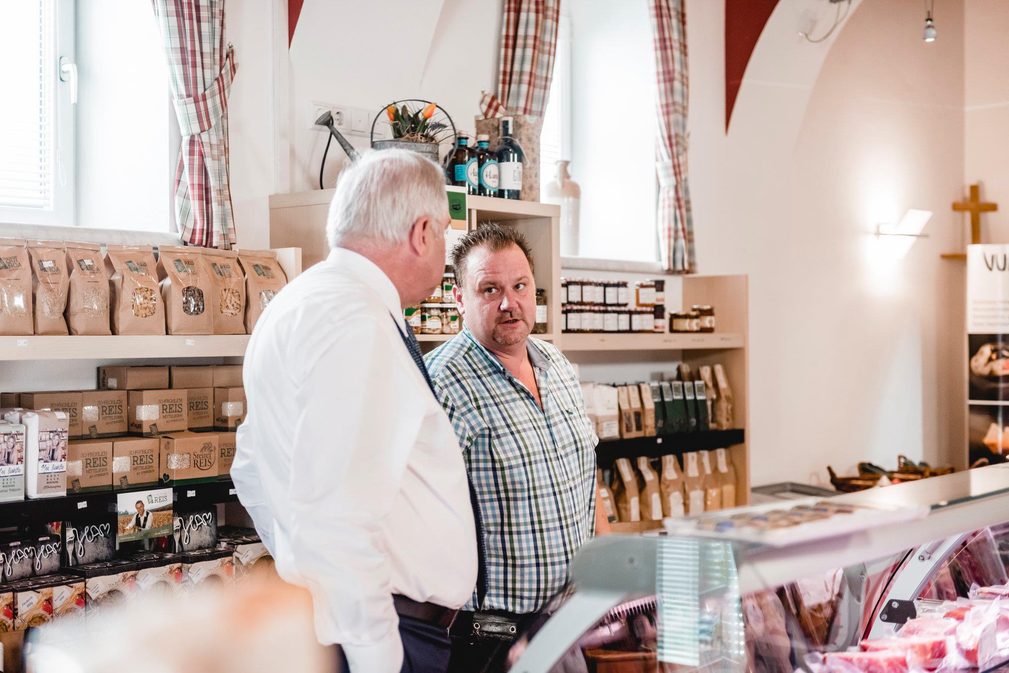 Mit Bürgermeister Hans Mayer besichtigte er den Aus- und Umbau der FF Schönberg um dann anschließend das SchmankerlECK der Familie Bernhard zu besuchen, in dem man ausschließlich regionale Lebensmittel erwerben kann.