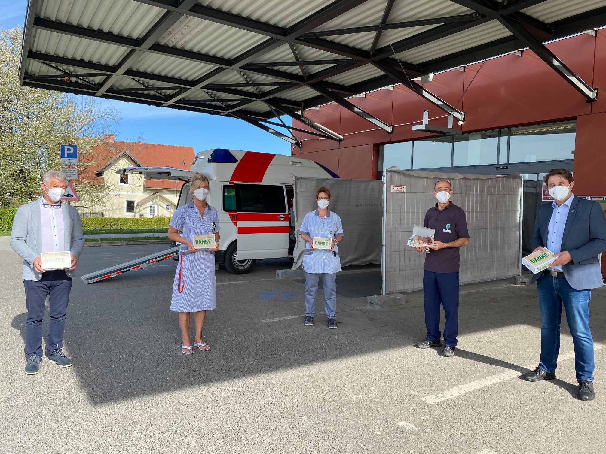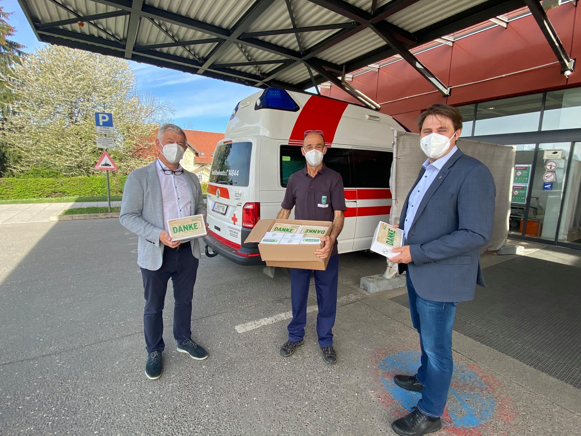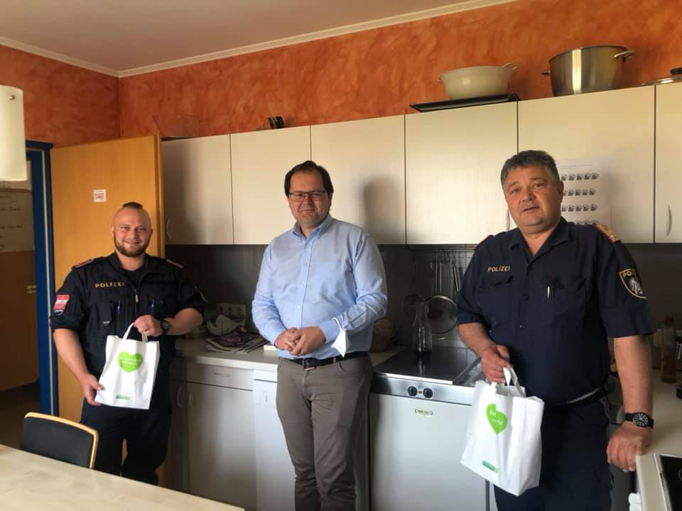 LAbg. Gerald Holler, ÖAAB Bezirksobmann Peter Tschernko und GF Irmgard Wran-Schumer besuchten unter anderem die Polizei, das Krankenhaus Wagna, das Rote Kreuz und bedankten sich bei allen Fleißigen, die auch an diesem Feiertag im Einsatz waren.