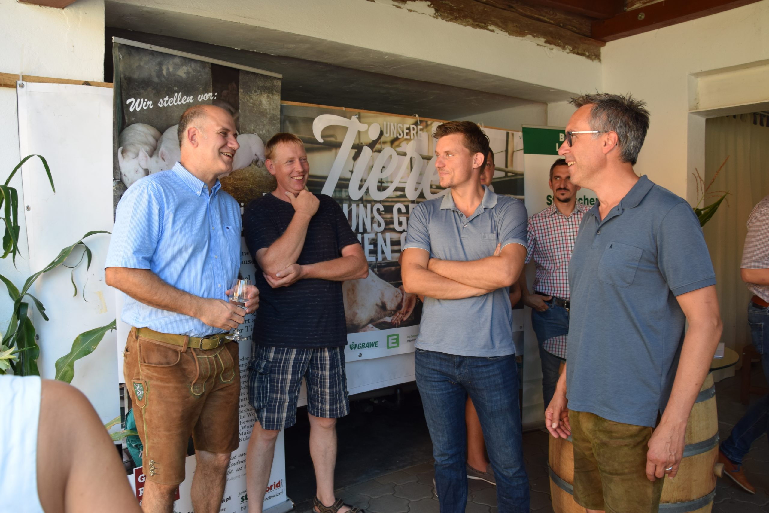 Am Schweinebetrieb von Martha und Helmut Rumpf in St. Georgen an der Stiefing waren die rund 30 anwesenden Bäuerinnen und Bauern besonders an den Veränderungen der Standards beim AMA-Gütesiegel interessiert. Seit Monaten arbeiten Vertreter der Schweinebranche, die Agrarmarketing Austria (AMA) sowie der Bauernbund intensiv an der Weiterentwicklung des AMA-Gütesiegels in Richtung mehr Tierwohl. Kürzlich ist im AMA-Fachgremium ein richtungsweisender Beschluss gelungen. „Mit dieser Entwicklung wollen die heimischen Schweinebäuerinnen und –bauern den Wünschen der Gesellschaft Rechnung tragen. Die Konsumentinnen und Konsumenten könnten jetzt schon auf ausreichend Fleisch aus GVO-freier Fütterung zugreifen. Wichtig ist, dass diese Veränderung jetzt auch von Lebensmitteleinzelhändlern, Verarbeitern sowie der Gastronomie mitgetragen wird. Jeder Tag ist somit eine Volksabstimmung vorm Regal“, so Strasser.