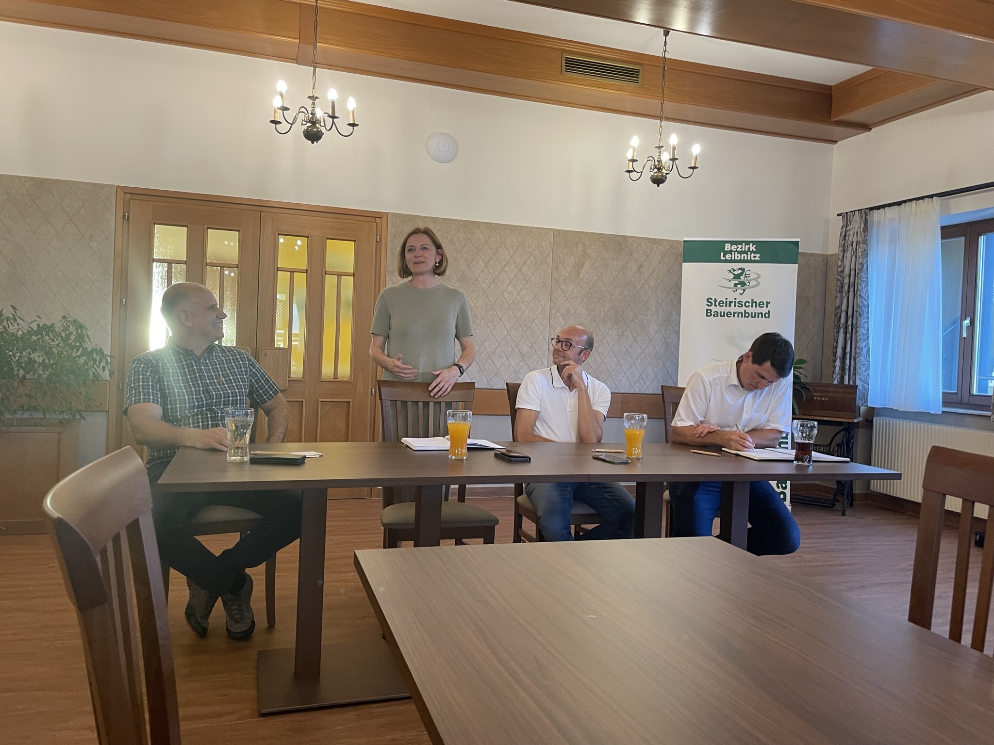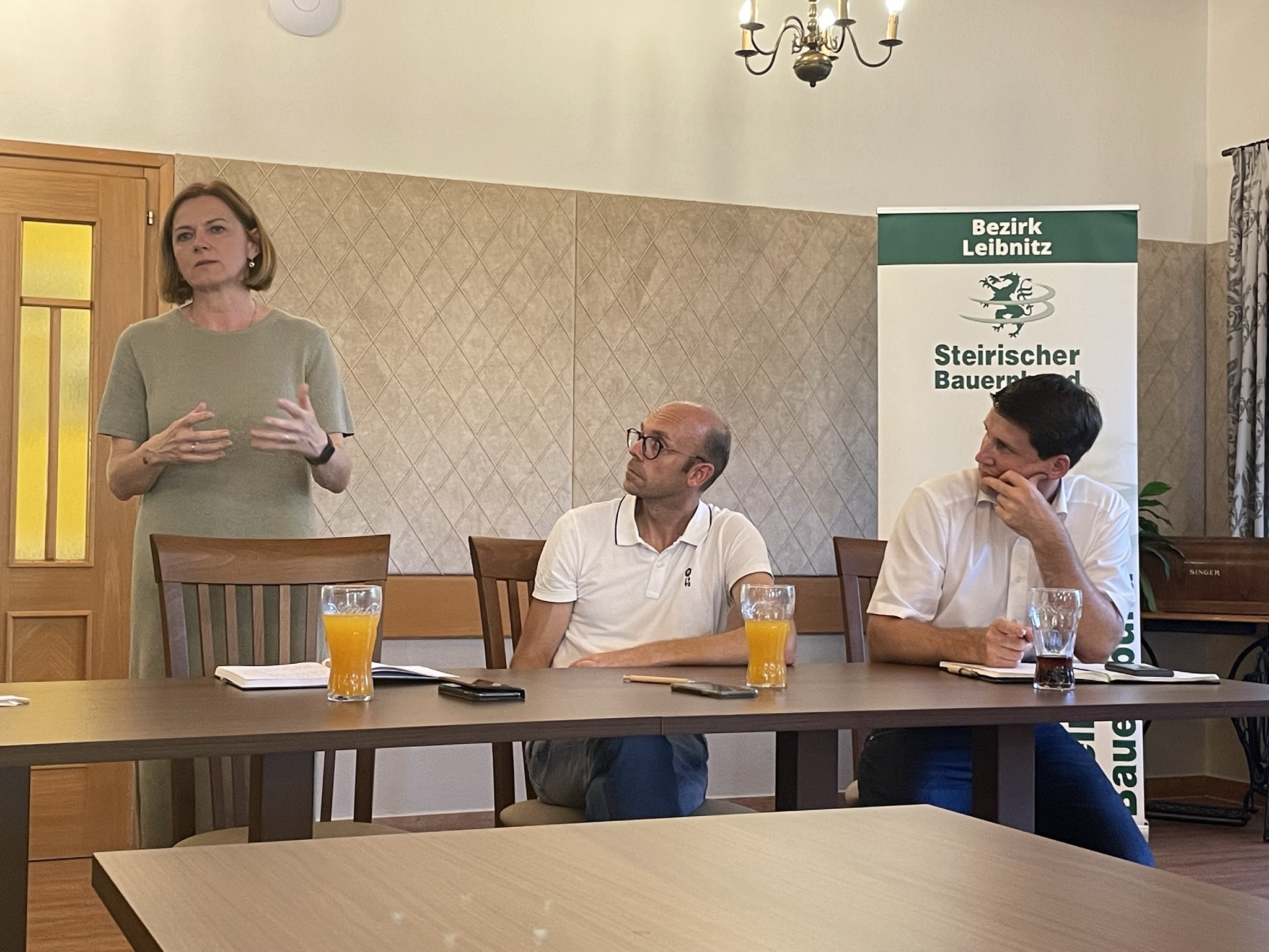 Simone Schmiedtbauer besuchte anlässlich ihrer Sommertour Betriebe in der Region Süd- und Weststeiermark. Am Abend stand dann der Austausch agrarpolitischen Themen mit den Funktionär:innen der Bezirke Leibnitz und Deutschlandsberg am Programm. Simone Schmiedtbauer berichtete über ihre Arbeit in Brüssel. Im Anschluss wurde über die aktuellen Herausforderungen der Landwirtschaft diskutiert.