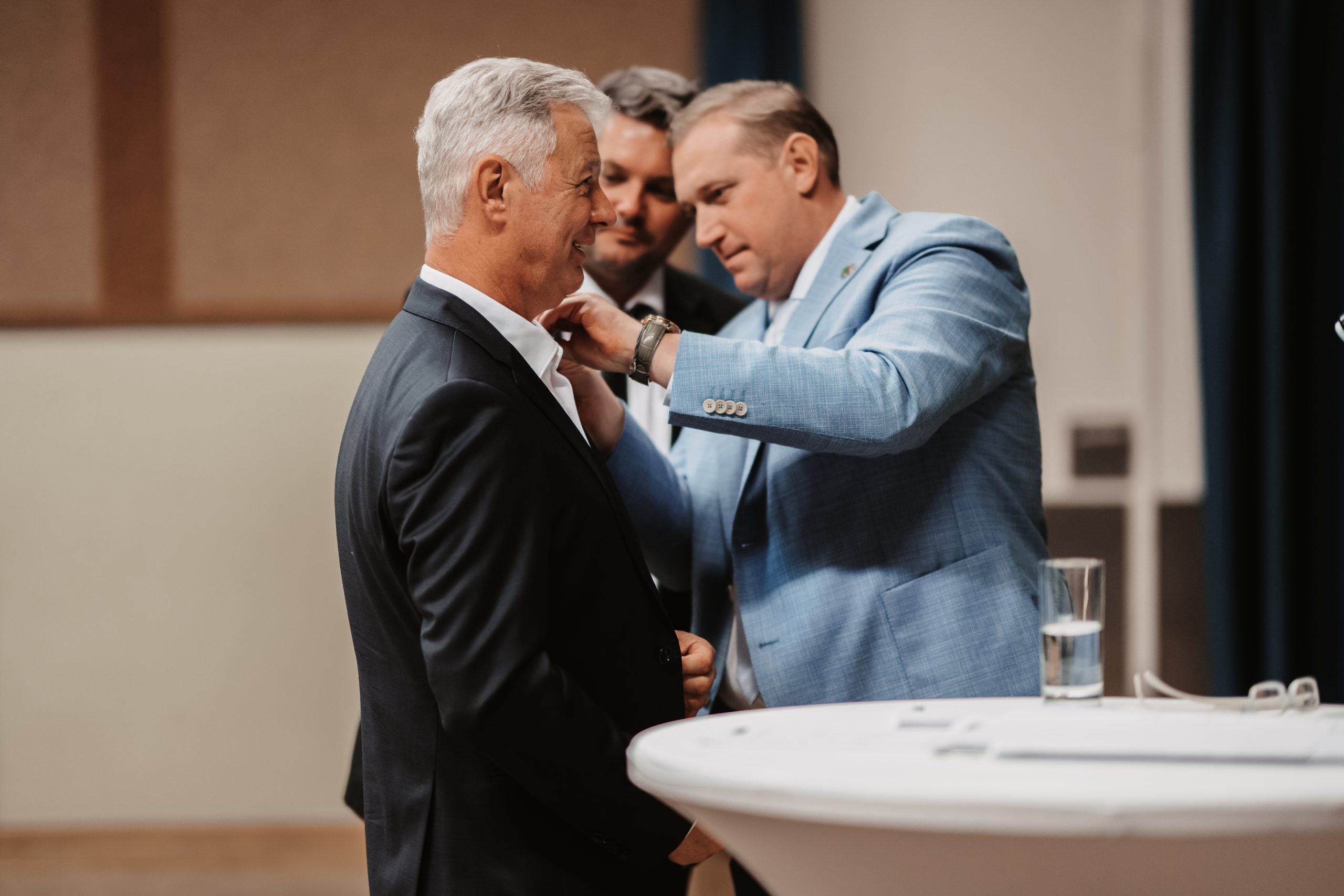 Landeshauptmann Christopher Drexler dankte dem scheidenden Obmann Peter Tschernko für seinen beeindruckenden Einsatz in seiner Zeit als Obmann. Dafür wurde Peter Tschernko zum Ehrenobmann ernannt und mit dem Silbernen Ehrenzeichen des Steirischer ÖAAB ausgezeichnet.