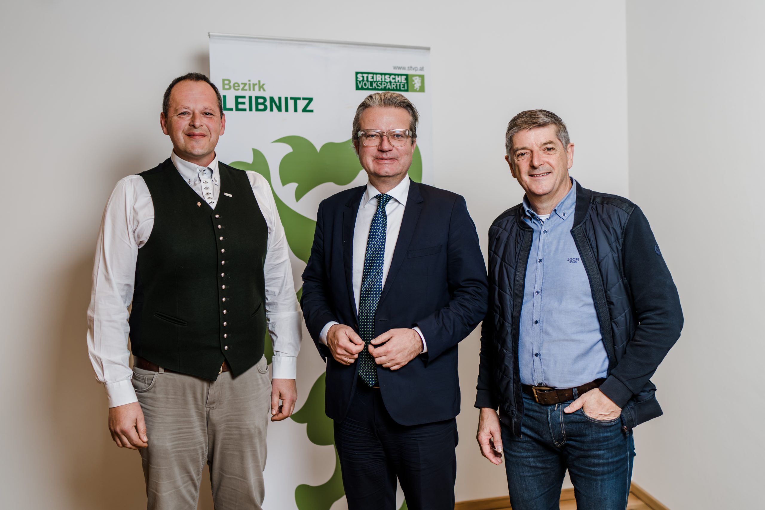 In der Bezirksparteileitung Leibnitz sprachen Landeshauptmann Christopher Drexler sowie NRAbg. BPO Schnabel und LAbg. Holler mit den Bürgermeisterinnen und Bürgermeistern sowie den Funktionärinnen und Funktionären über die Anliegen und Herausforderungen der Gemeinde und der Region.