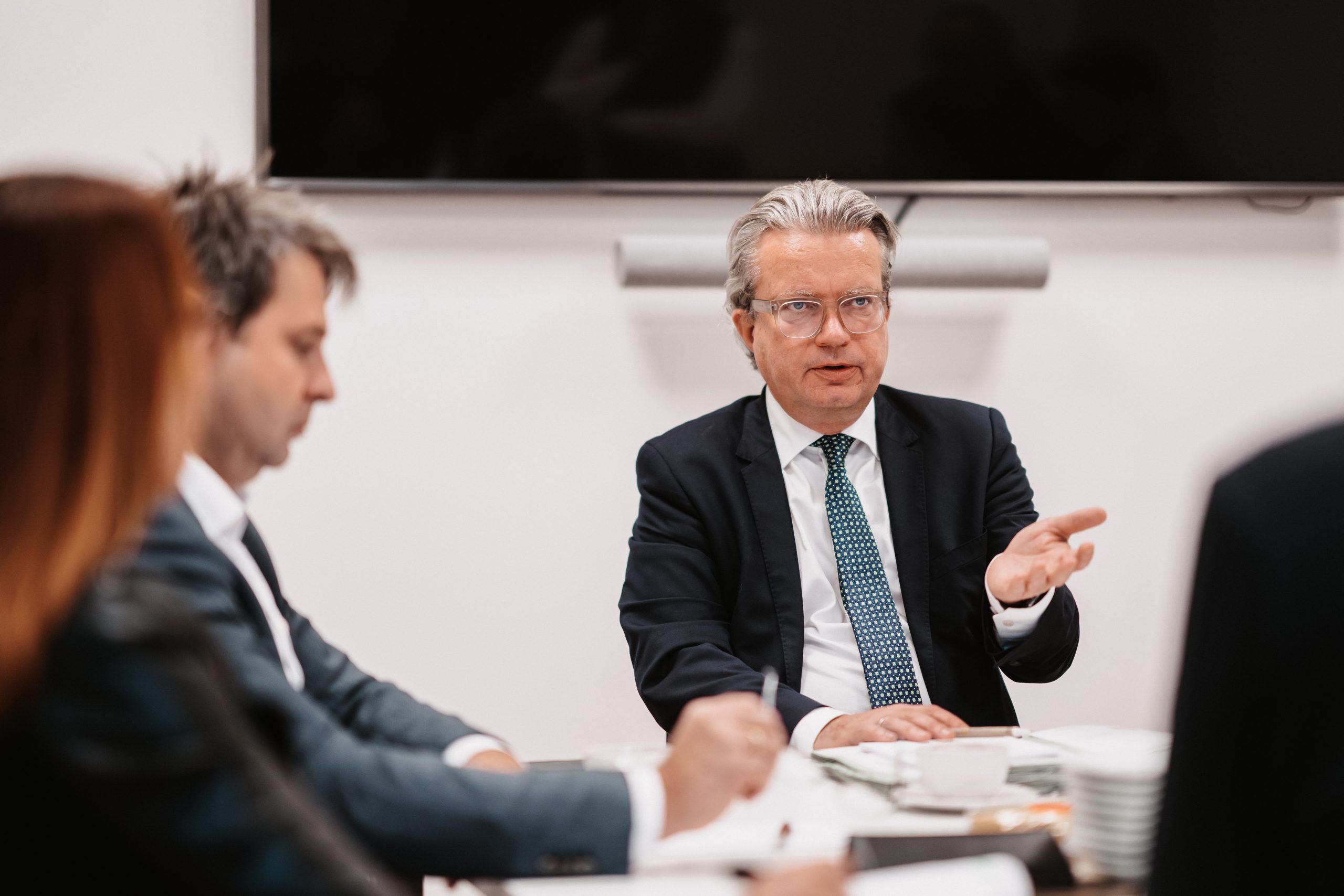 Landeshauptmann Christopher Drexler im Gespräch mit politischen Vertreterinnen und Vertretern der Steirischen Volkspartei des Bezirkes Leibnitz