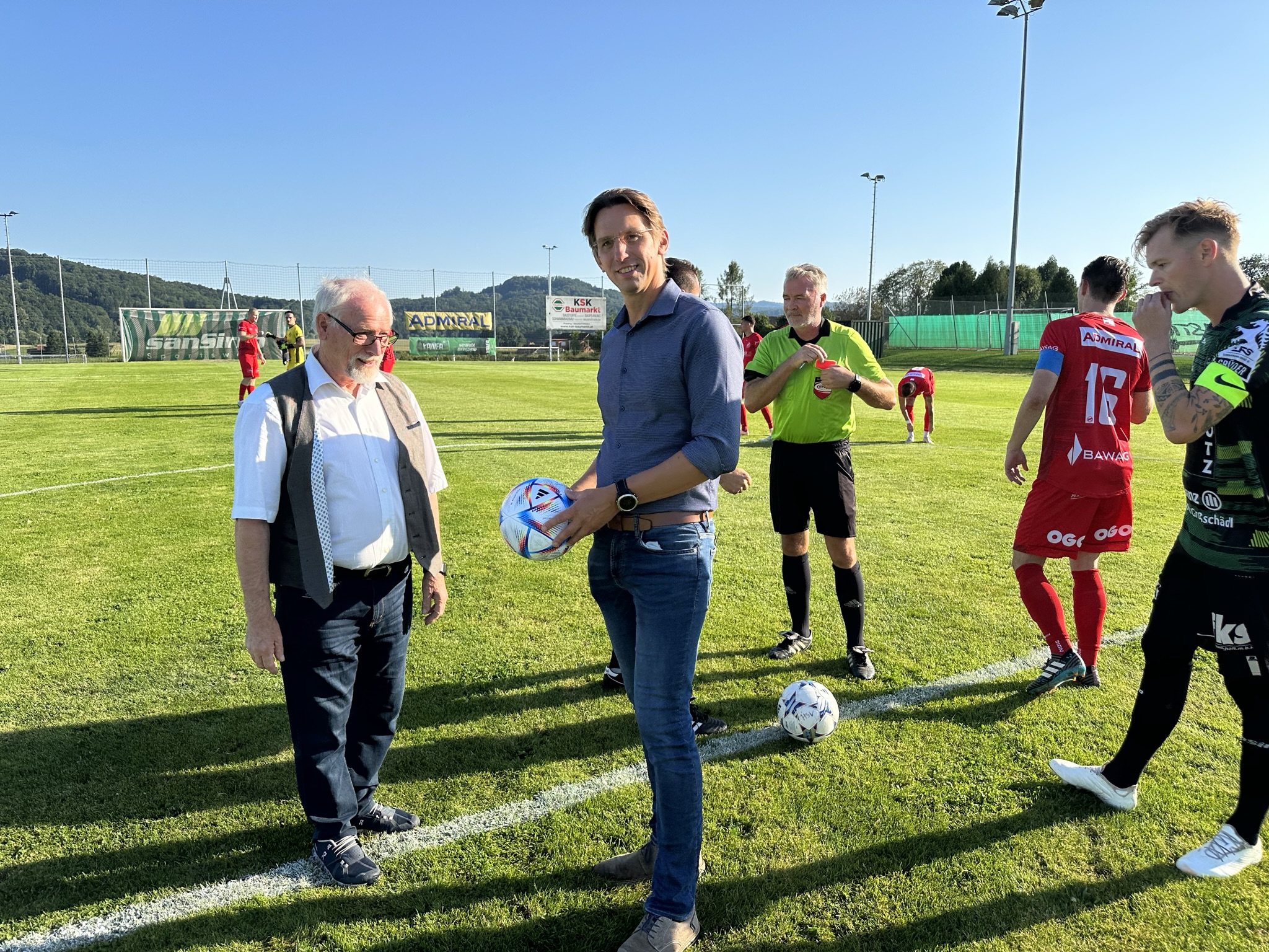 In Vertretung für Landeshauptmann Christopher Drexler übergab Abg.z.NR. Bgm. Joachim Schnabel beim Spiel des USV Hengsberg gegen SV Flavia Solva einen Matchball. Das Spiel endete mit einem 2:1 Heimsieg für den SV Hengsberg.