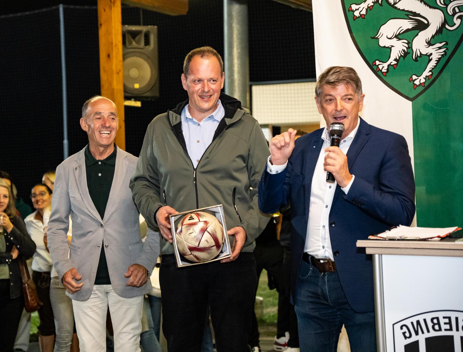 Anlässlich der 60 Jahr-Feier des USV Siebing übergaben Bgm. Gerhard Rohrer, Vzbgm. Georg Pock und GK August Jöbstl in Vertretung für Landeshauptmann Christopher Drexler einen Matchball aus der landesweiten STVP-Aktion.