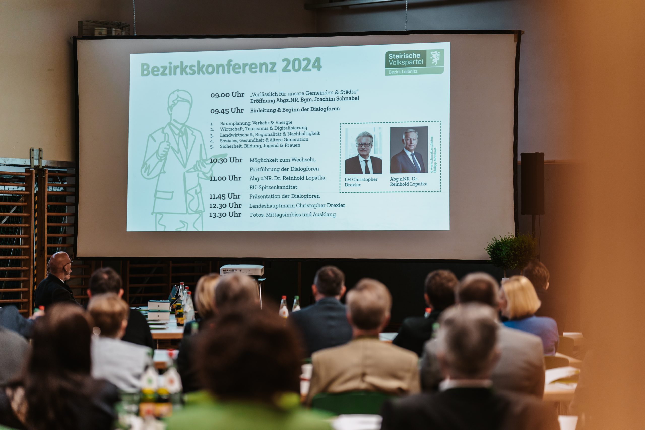 Zu einer Bezirkskonferenz lud die Steirische Volkspartei des Bezirkes Leibnitz mit ihrem Bezirksparteiobmann NRAbg. Joachim Schnabel nach Gamlitz ein. Die große Anzahl der Besucher, über 150, bestätigte das gewählte Format, die Teilnehmer aktiv in Form des Dialogs in den Prozess der Erarbeitung der wichtigsten Themen für die beste Weiterentwicklung des Bezirkes miteinzubeziehen. Bearbeitet wurden die wichtigsten Fragen und Aufgaben in Raumplanung, Verkehr und Digitalisierung, Wirtschaft, Tourismus, Energie, Landwirtschaft, Regionalität, Nachhaltigkeit sowie Soziales, Gesundheit, Sicherheit, Bildung, Jugend und Frauen.