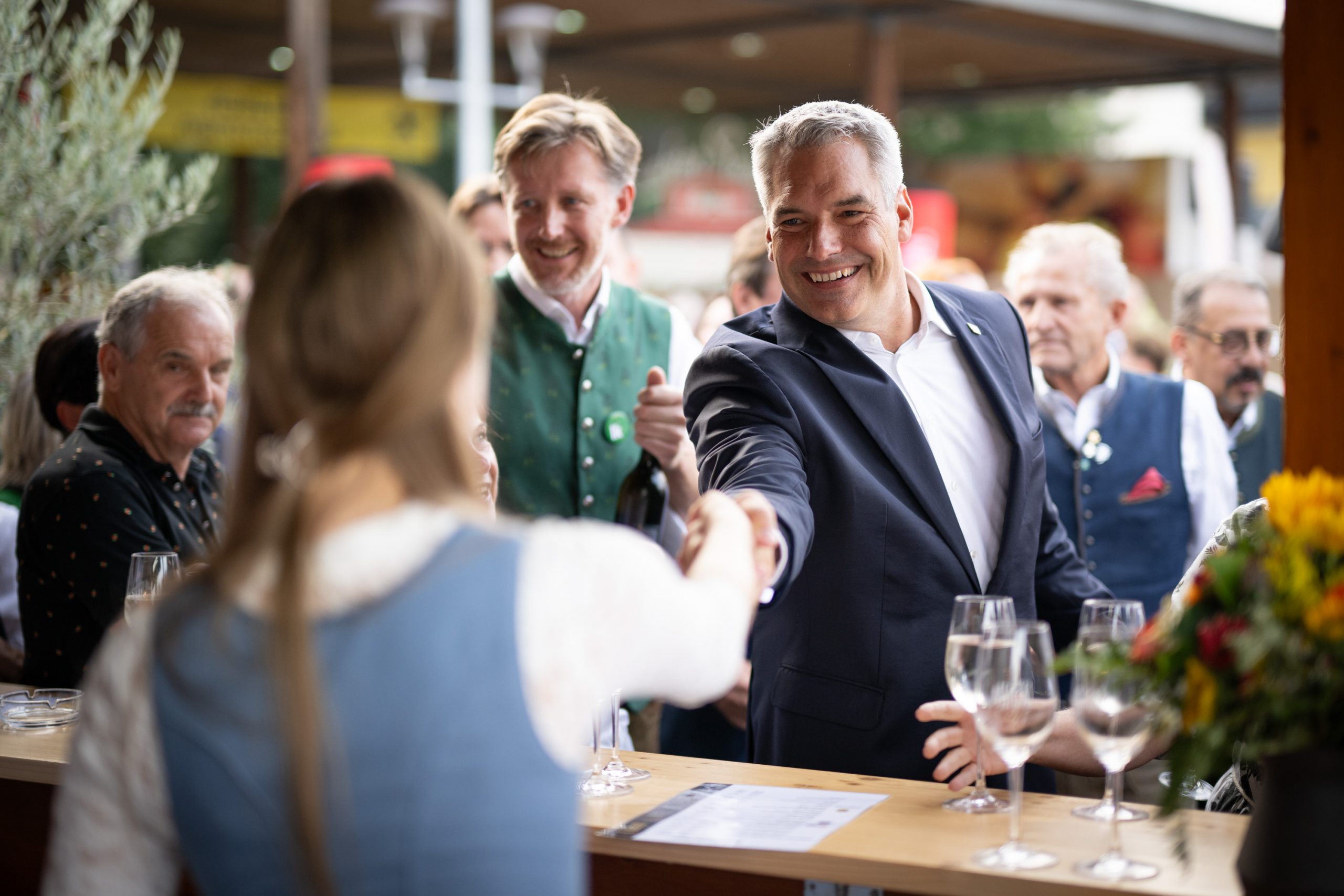 Den anschließenden Besuch auf der südsteirische Weinwoche nützte Bundeskanzler Karl Nehammer für viele Gespräche mit den zahlreichen Besuchern.