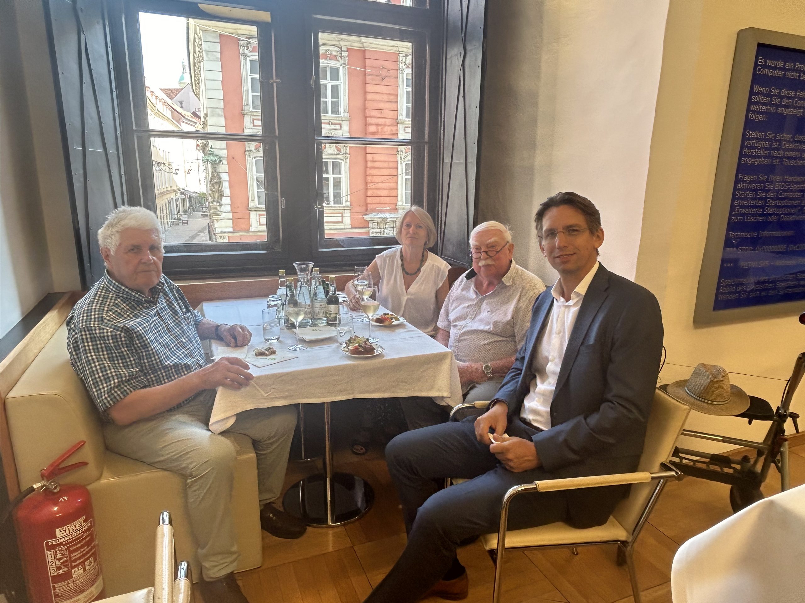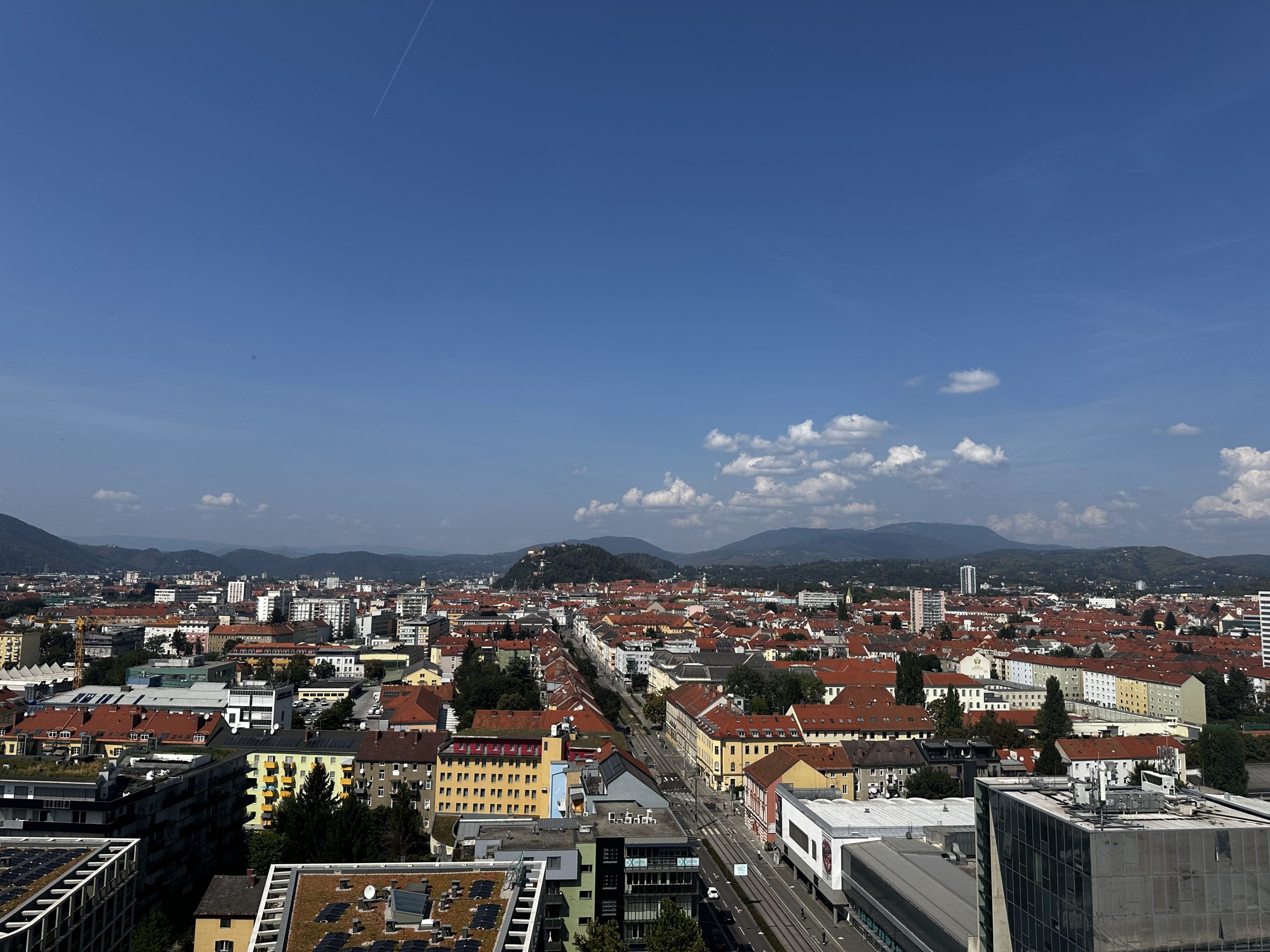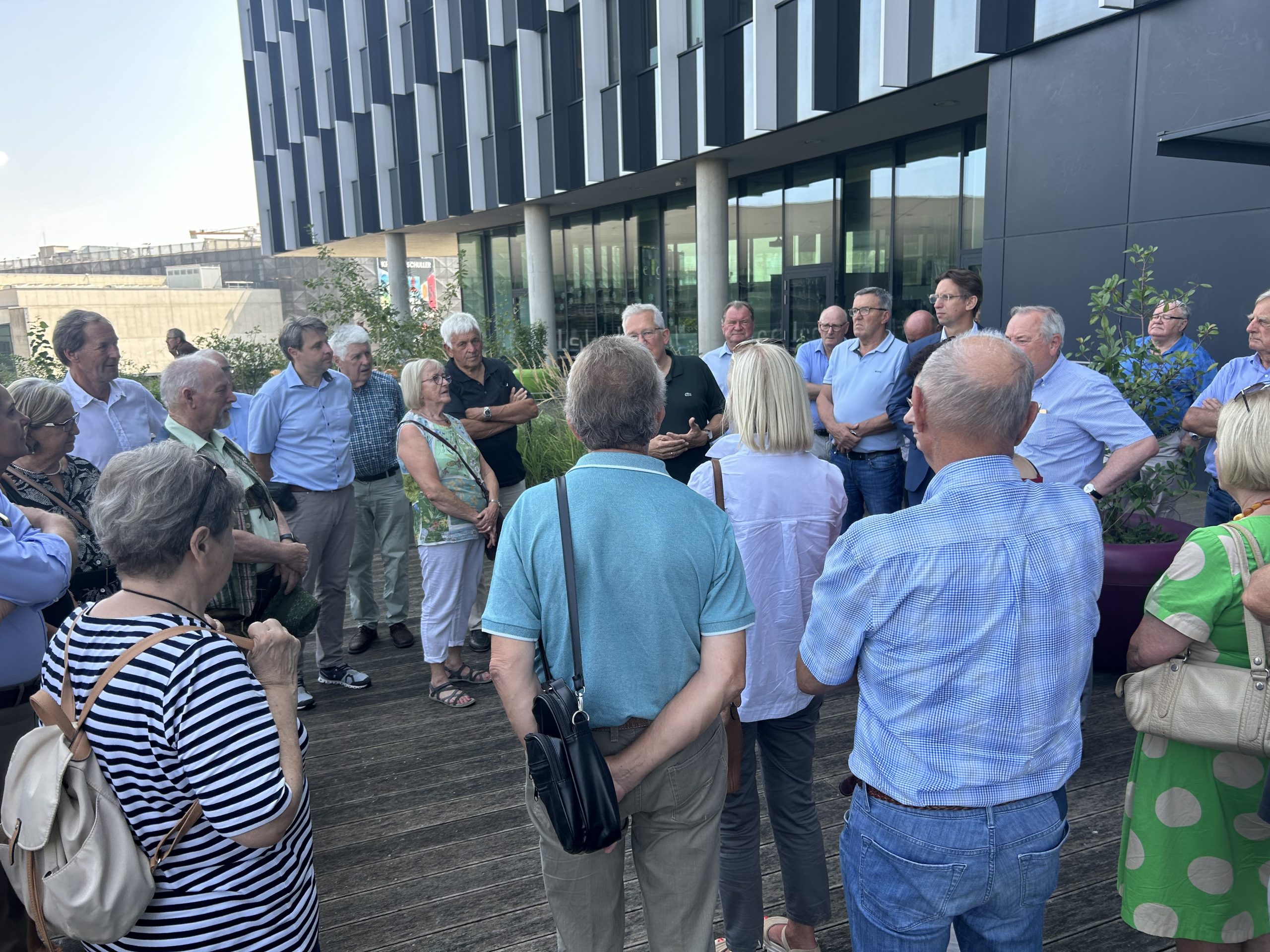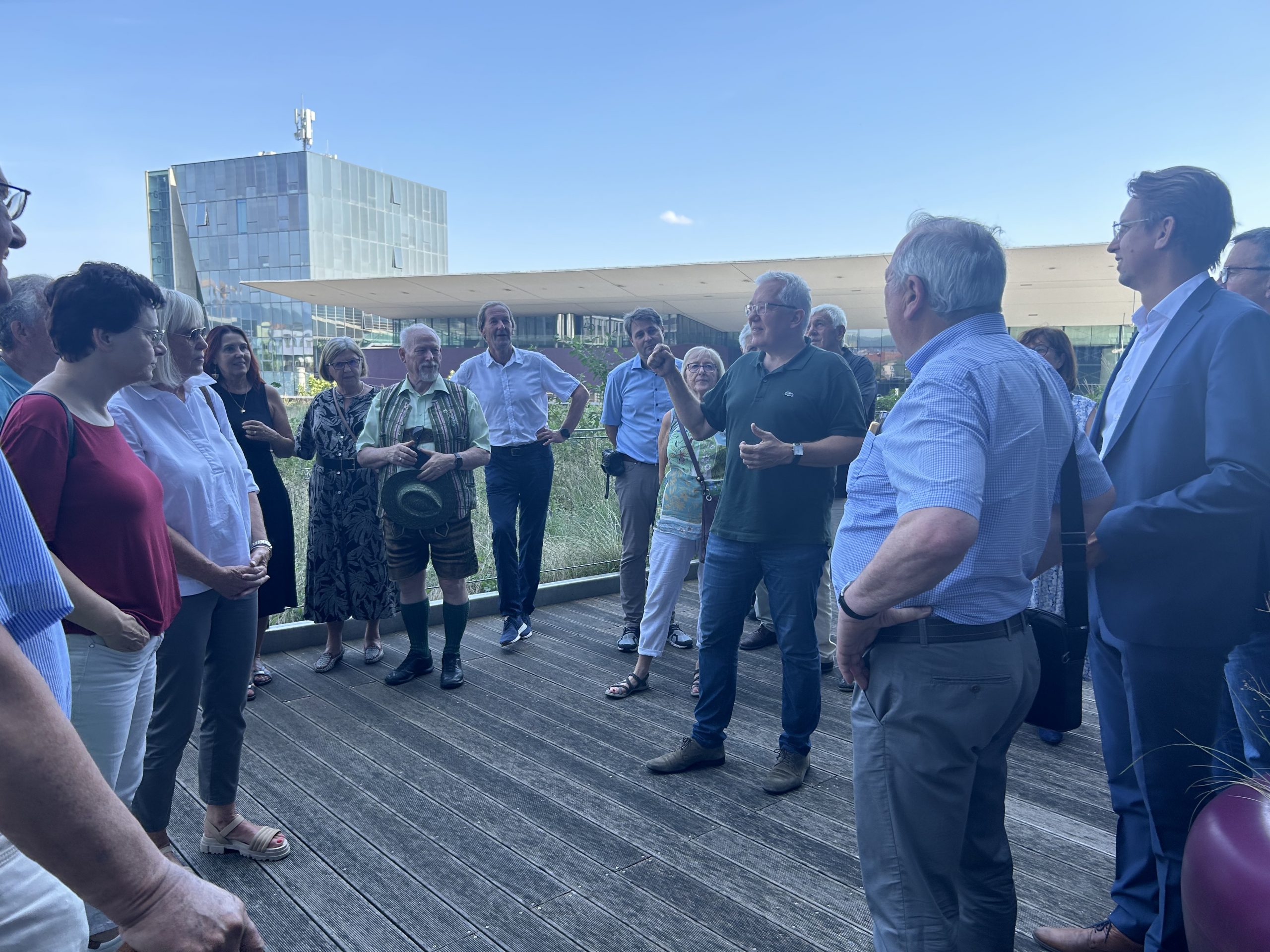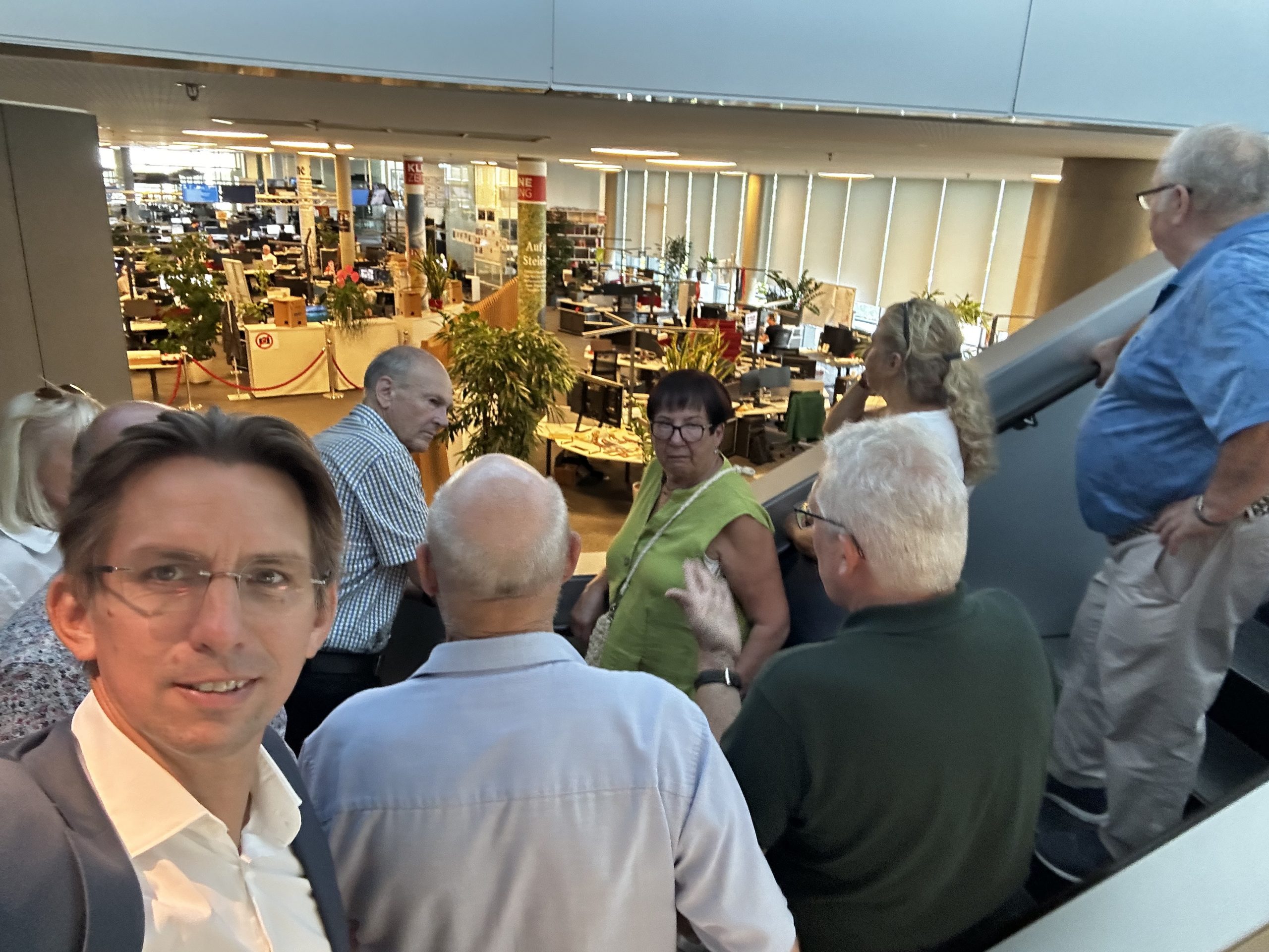 Danach besuchte die Gruppe das Styria Media Center. Bei der Führung durch das Haus konnten die Besucherinnen und Besucher auch einen Blick in den Newsroom der Kleinen Zeitung werfen. Geschäftsführer Thomas Spann ließ es sich nicht nehmen, die Gäste persönlich zu begrüßen und auf die imposante Dachterrasse des Skyrooms mit traumhaftem Blick über Graz zu begleiten.